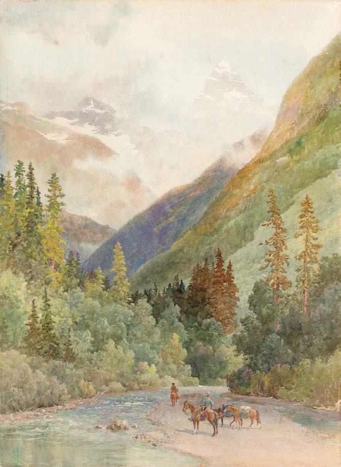 The late 1920s marked a period of industrious activity for J.E.H. MacDonald. Having earned accolades as a founding member of the Group of Seven by this time, MacDonald became increasingly occupied with his work at the Ontario College of Art and various commissions involving book design, illustrations and architectural design. MacDonald carried out yearly painting trips to British Columbia, returning with accomplished oil sketches of the Rockies. MacDonald became the Principal of O.C.A. in 1929, and the following year, he was elected to the Royal Canadian Academy.