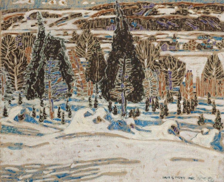 David Milne’s Young Cedars (1919), painted during one of the most esteemed periods of his career, sold for $792,000, more than doubling its presale estmate. Jock Macdonald’s Drying Herring Roe, a monumental