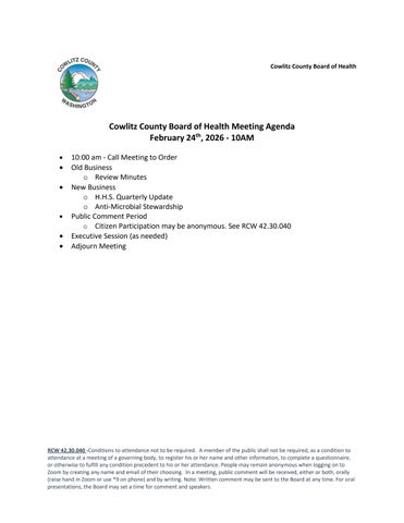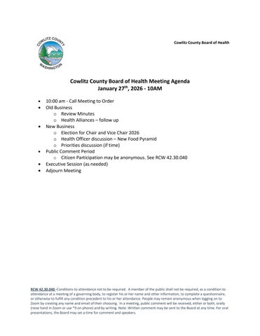 Board of Health Agenda Jan 2026