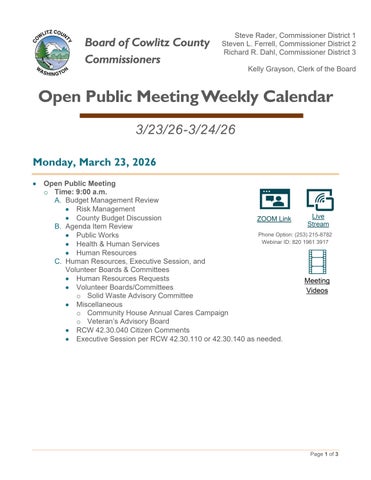 Open Public Meeting Calendar 3.2.26-3.3.26