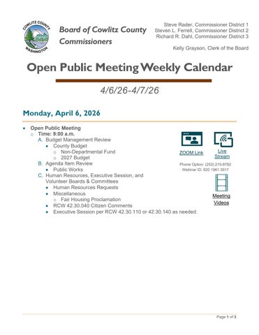 Open Public Meeting Calendar Website 4.6.26-4.7.26