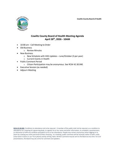 Board of Health Agenda 4.28.26