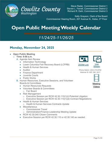 Open Public Meeting Weekly Calendar 11.03.25-11.05.2025
