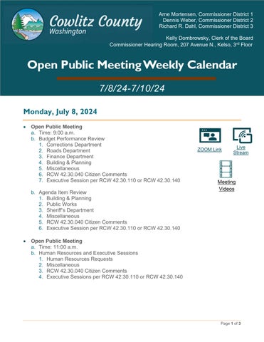 Open Public Meeting Weekly Calendar 7/8/2024-7/10/2024