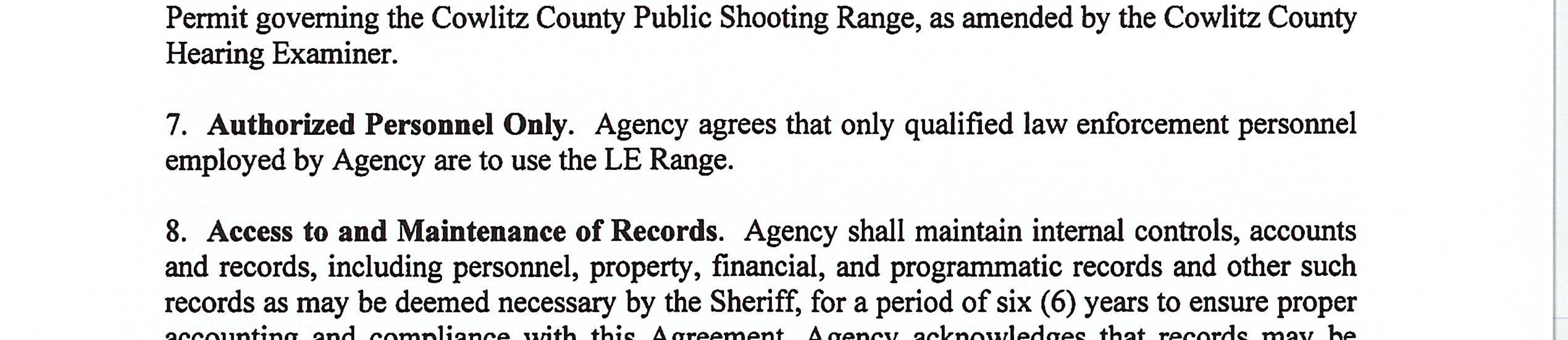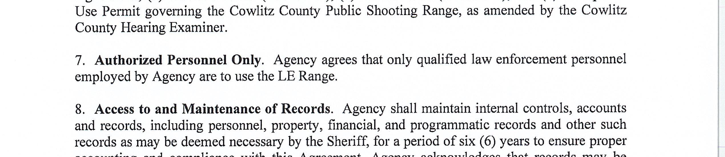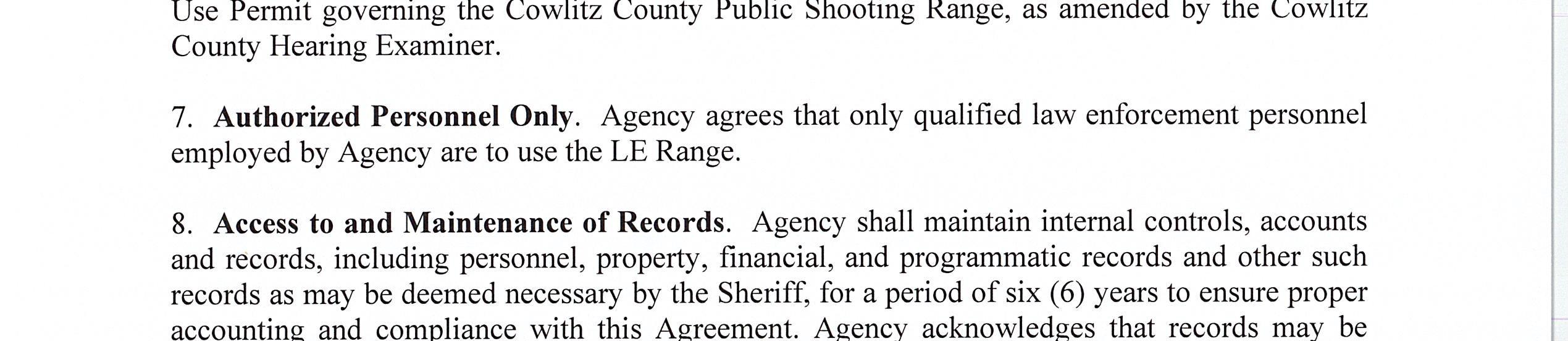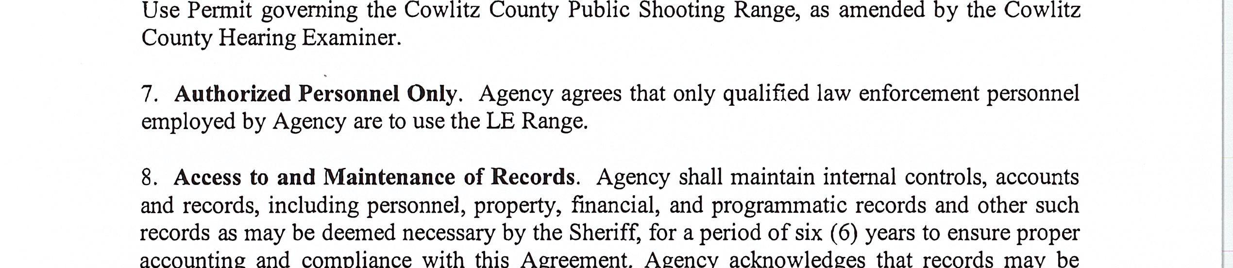 7. Memorandum of Agreement with the Washington Department of Fish and Wildlife for the use of the Cowlitz County Public Shooting Range for Law Enforcement Firearms Training Activities until December 31, 2026. (14668)