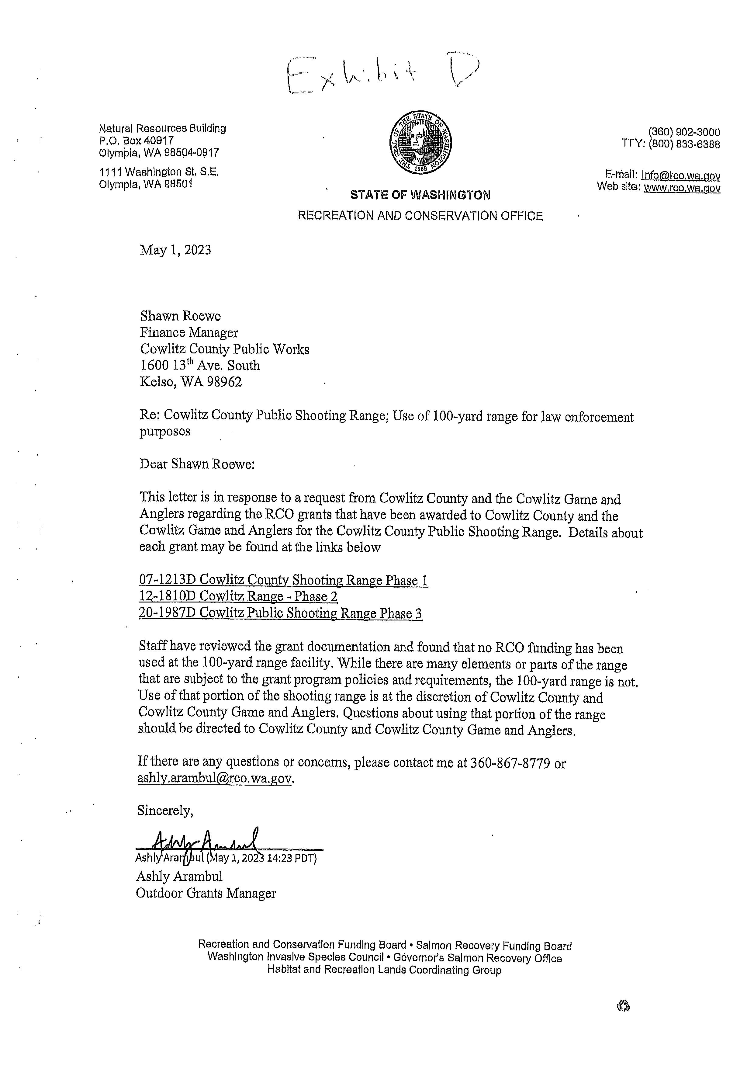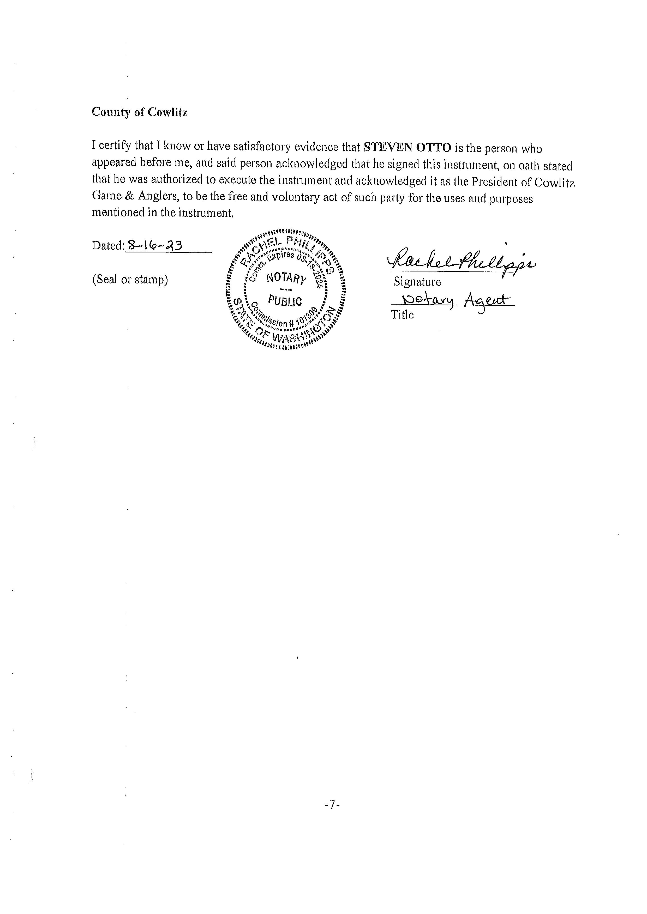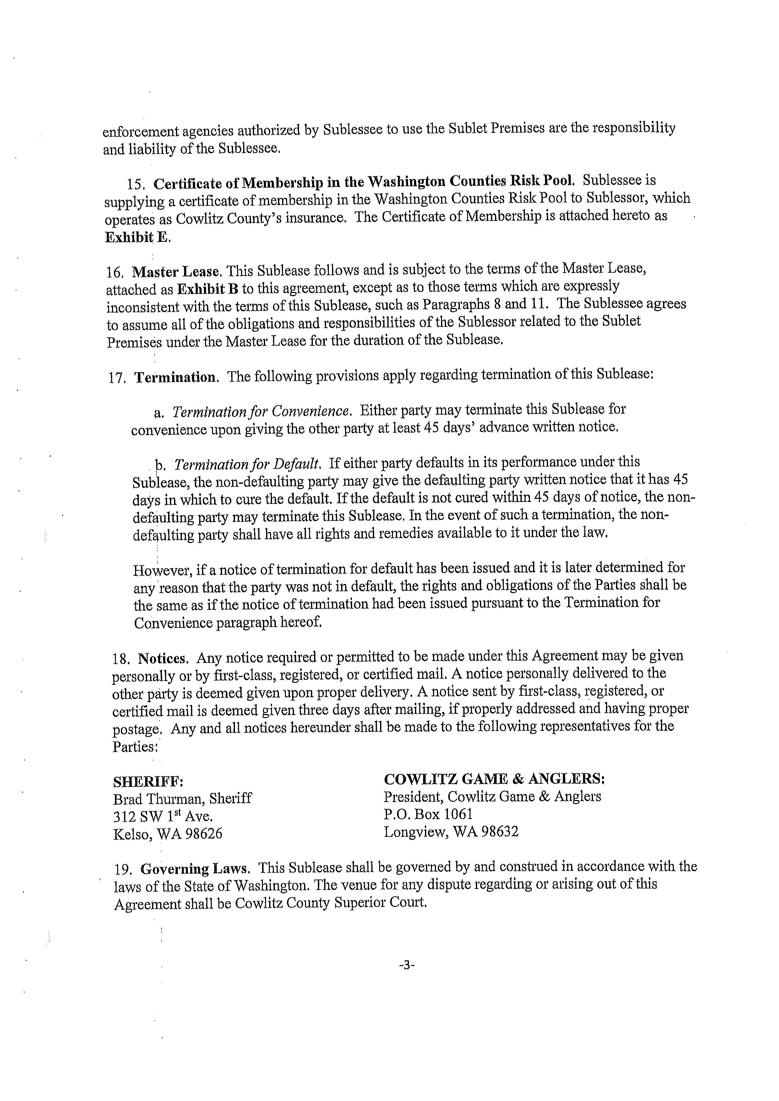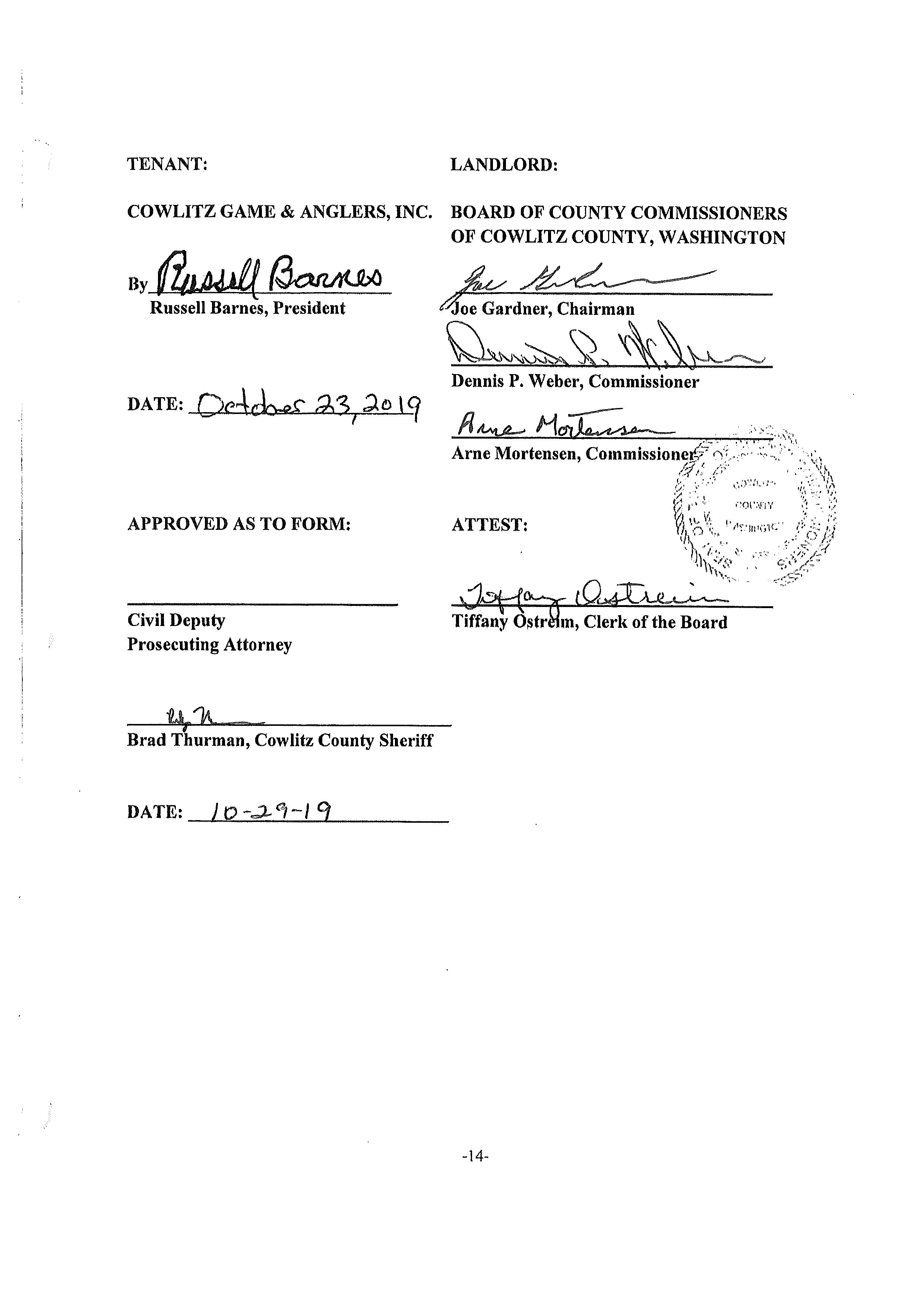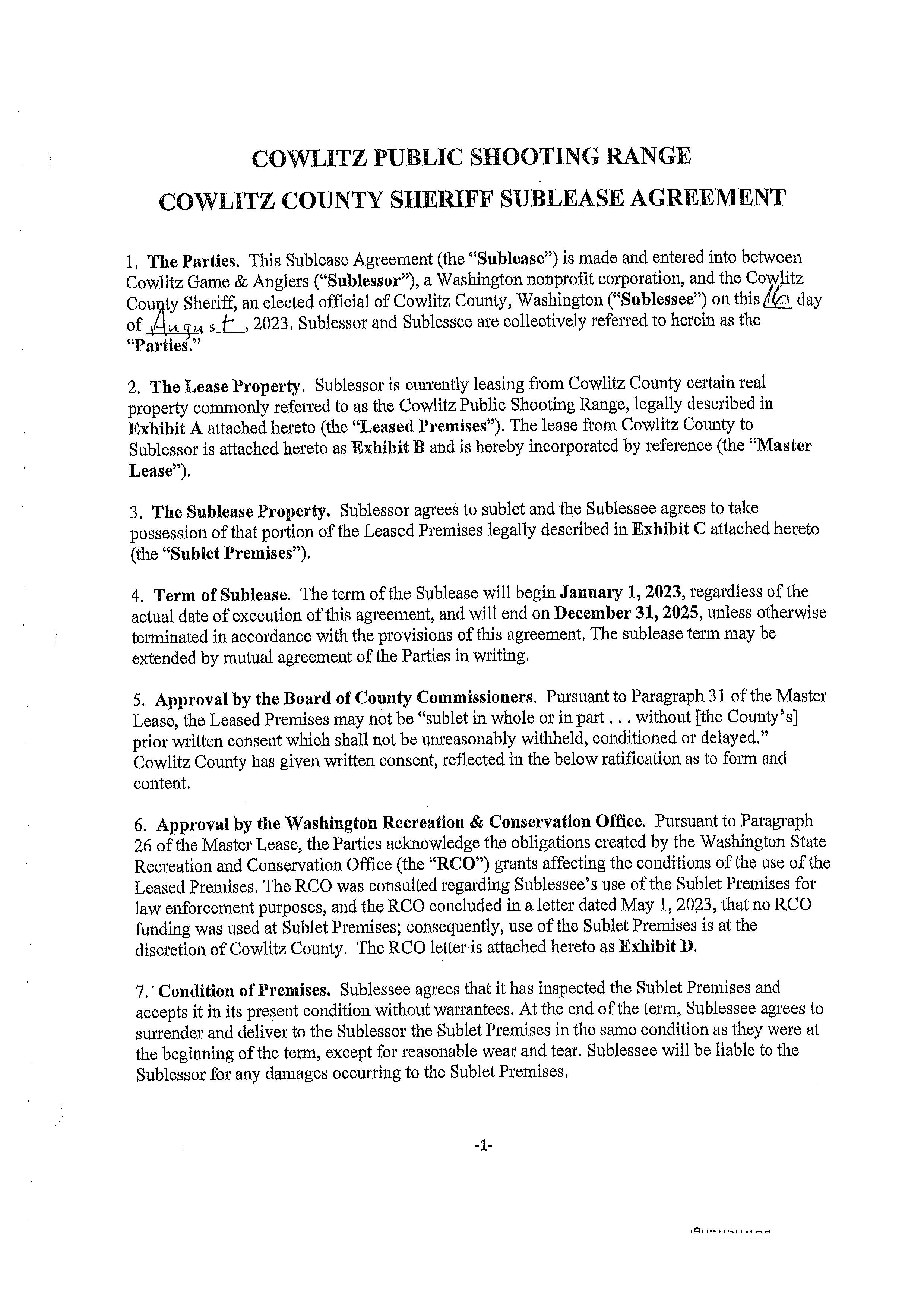 7. Memorandum of Agreement with the Washington Department of Fish and Wildlife for the use of the Cowlitz County Public Shooting Range for Law Enforcement Firearms Training Activities until December 31, 2026. (14668)