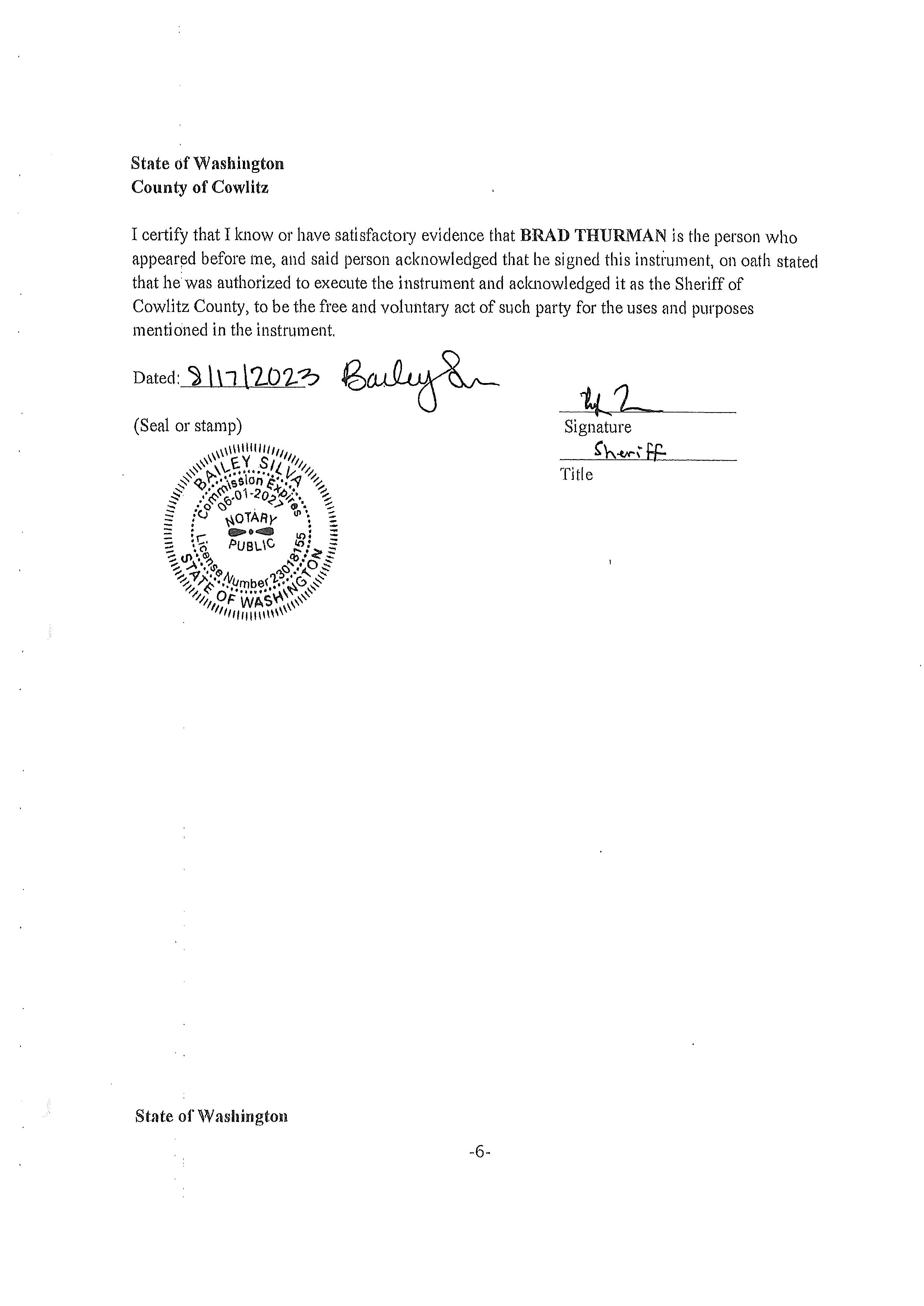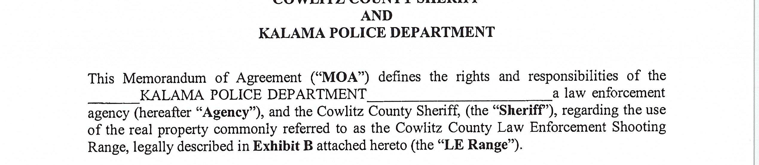 6. Memorandum of Agreement with the Kalama Police Department for the use of the Cowlitz County Public Shooting Range for Law Enforcement Firearms Training Activities until December 31, 2026. (14669)