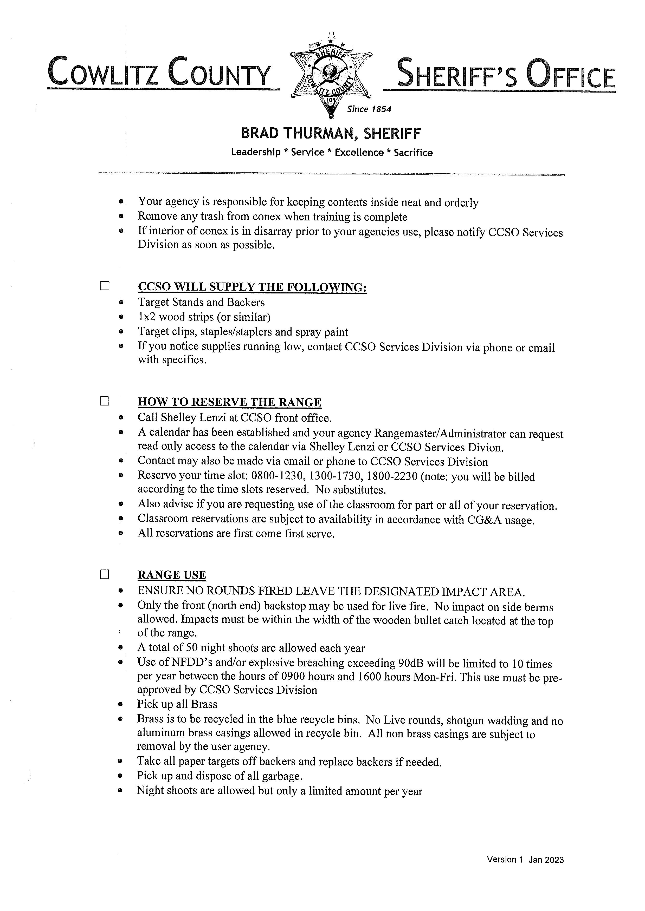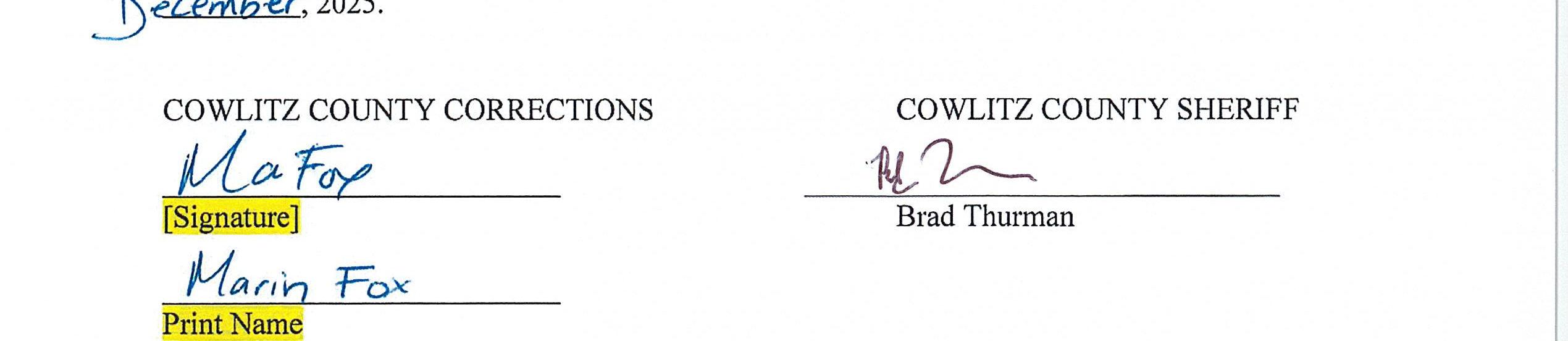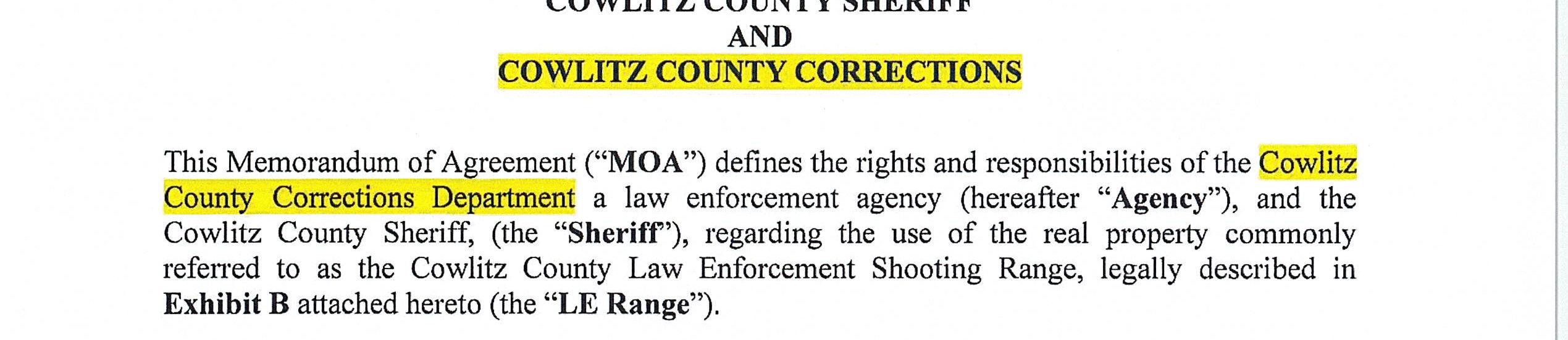 3. Memorandum of Agreement with the Correction Department for the use of the Cowlitz County Public Shooting Range for Law Enforcement Firearms Training Activities until December 31, 2026. (14665)