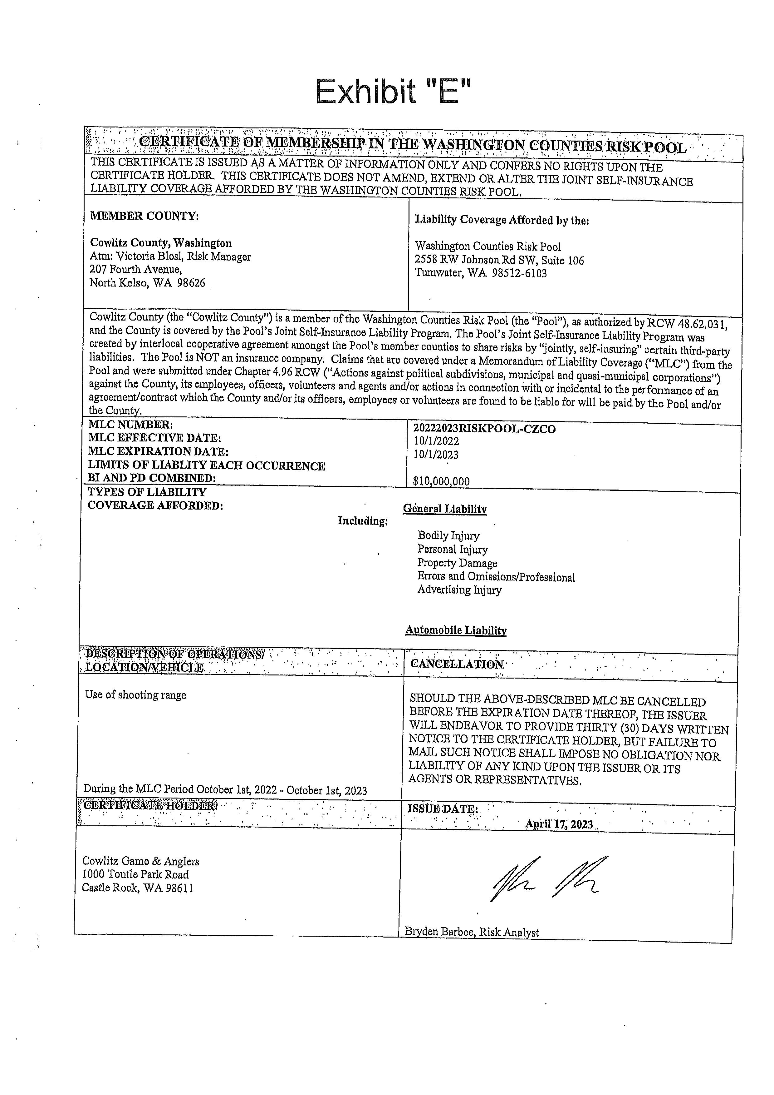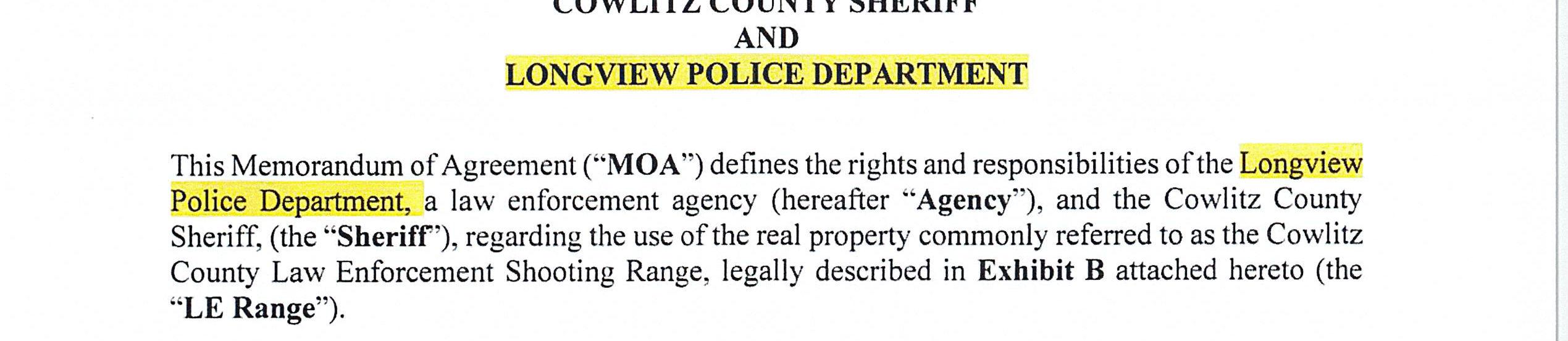 4. Memorandum of Agreement with the Longview Police Department for the use of the Cowlitz County Public Shooting Range for Law Enforcement Firearms Training Activities until December 31, 2026. (14666)