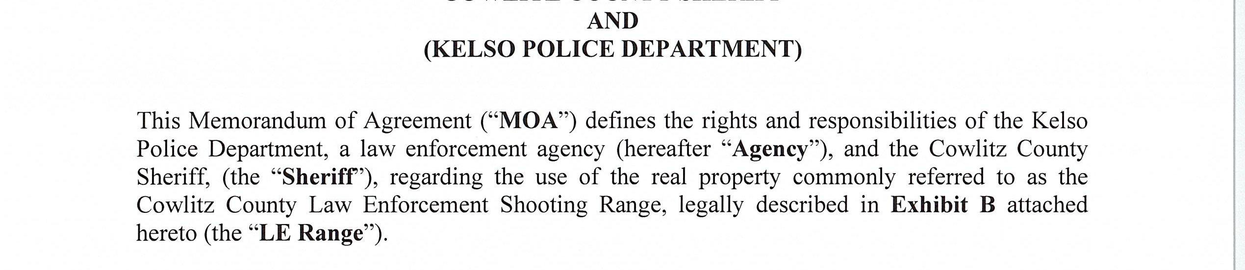 5. Memorandum of Agreement with the Kelso Police Department for the use of the Cowlitz County Public Shooting Range for Law Enforcement Firearms Training Activities until December 31, 2026. (14667)