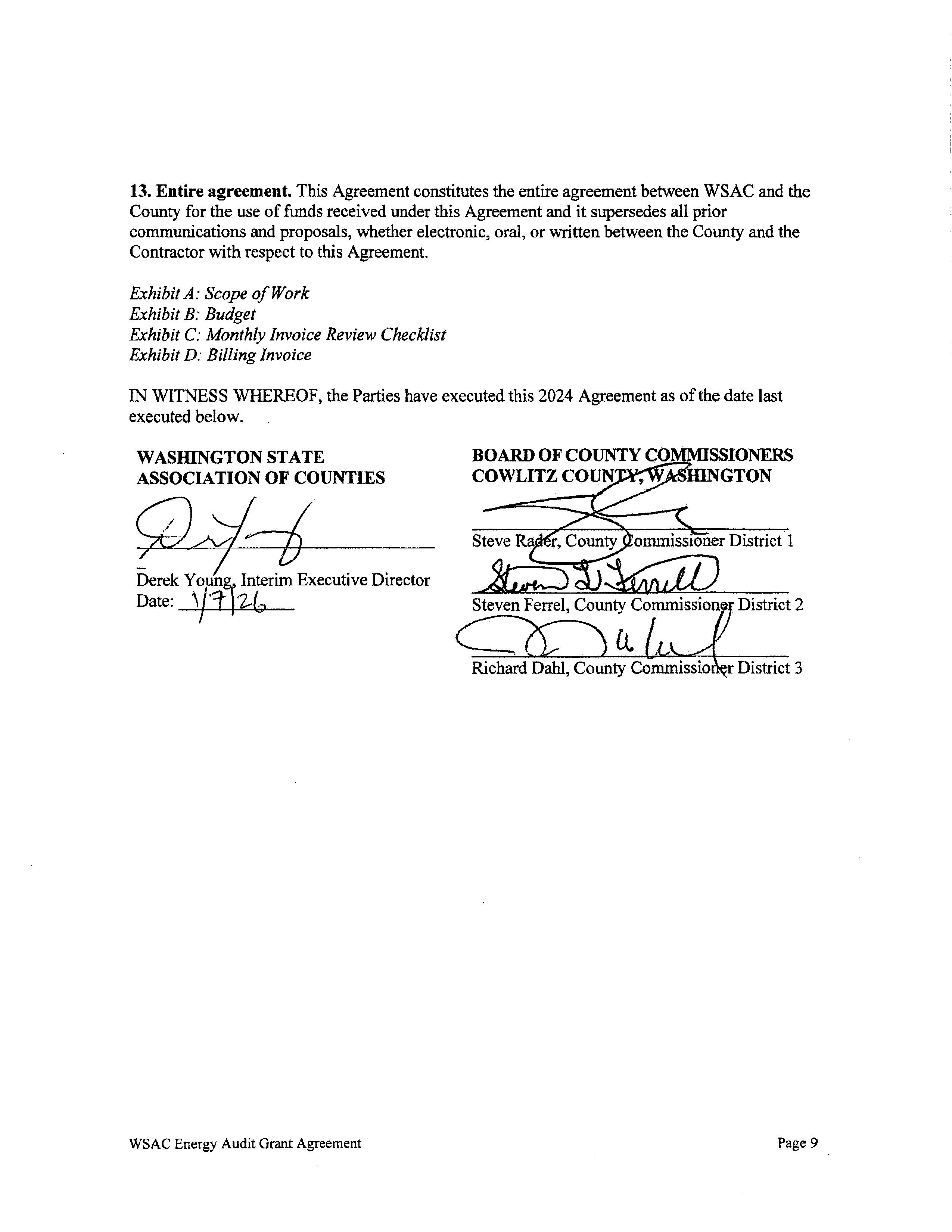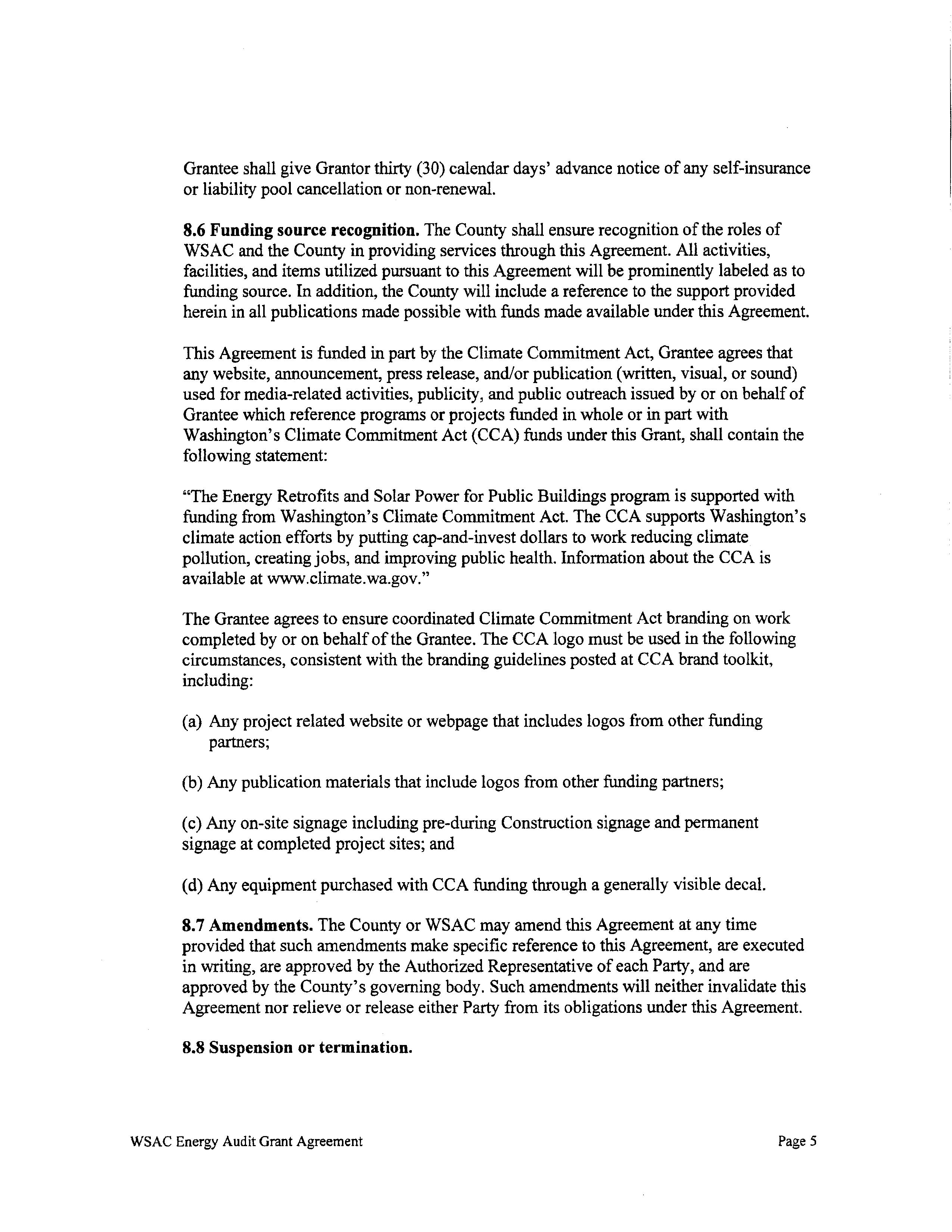 4. Clean Buildings Performance Grant Agreement with Washington Association of Counties (WSAC) seeking reimbursement for the Energy Audit in the Hall of Justice (HOJ). The total reimbursement is $97,750.00. (14671)