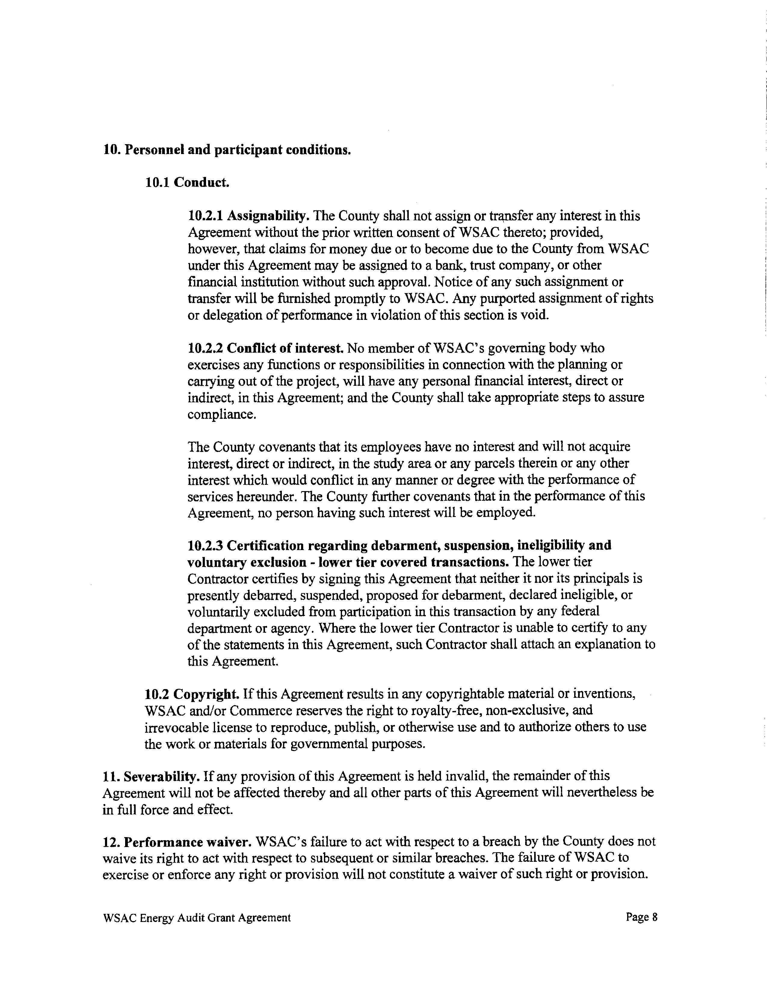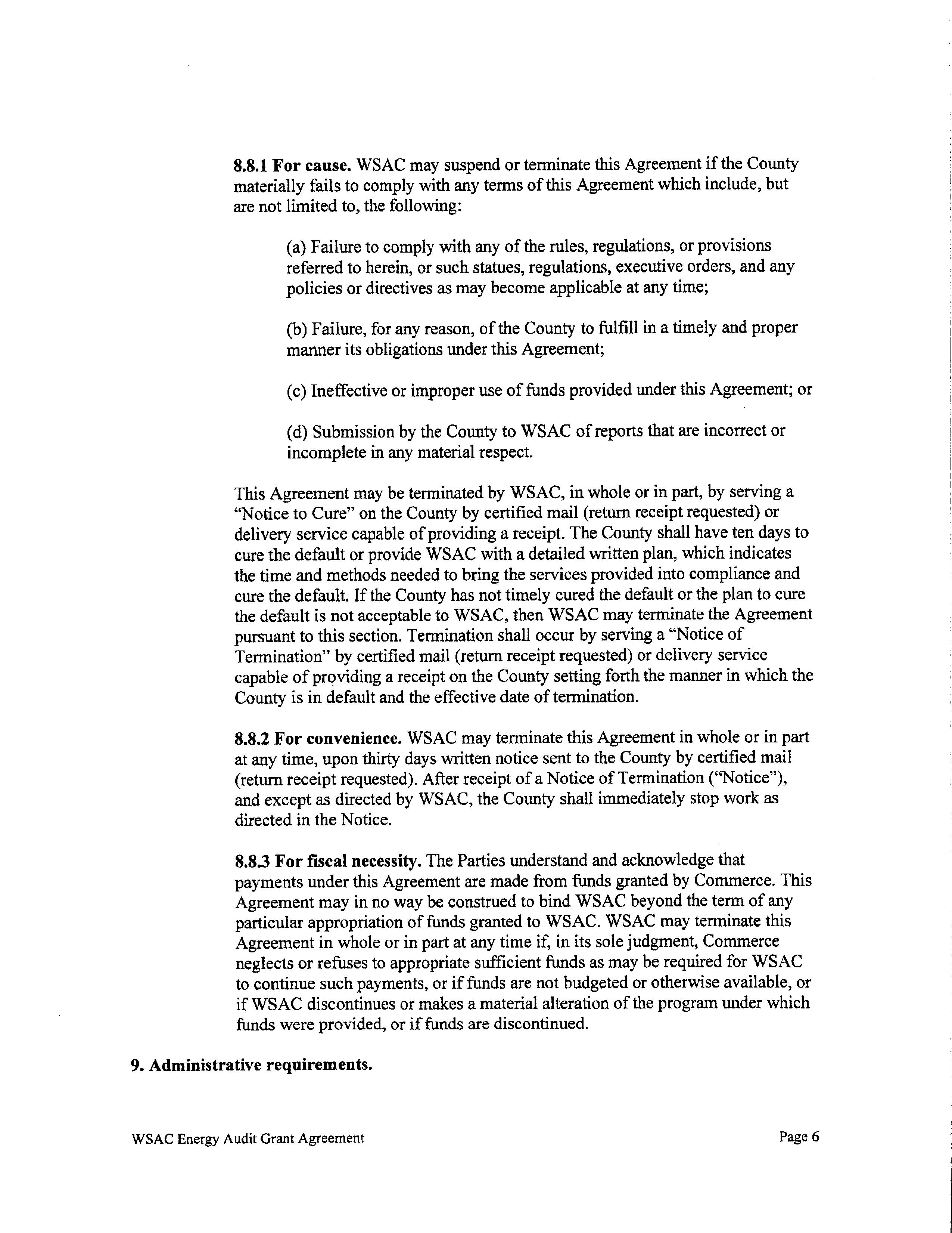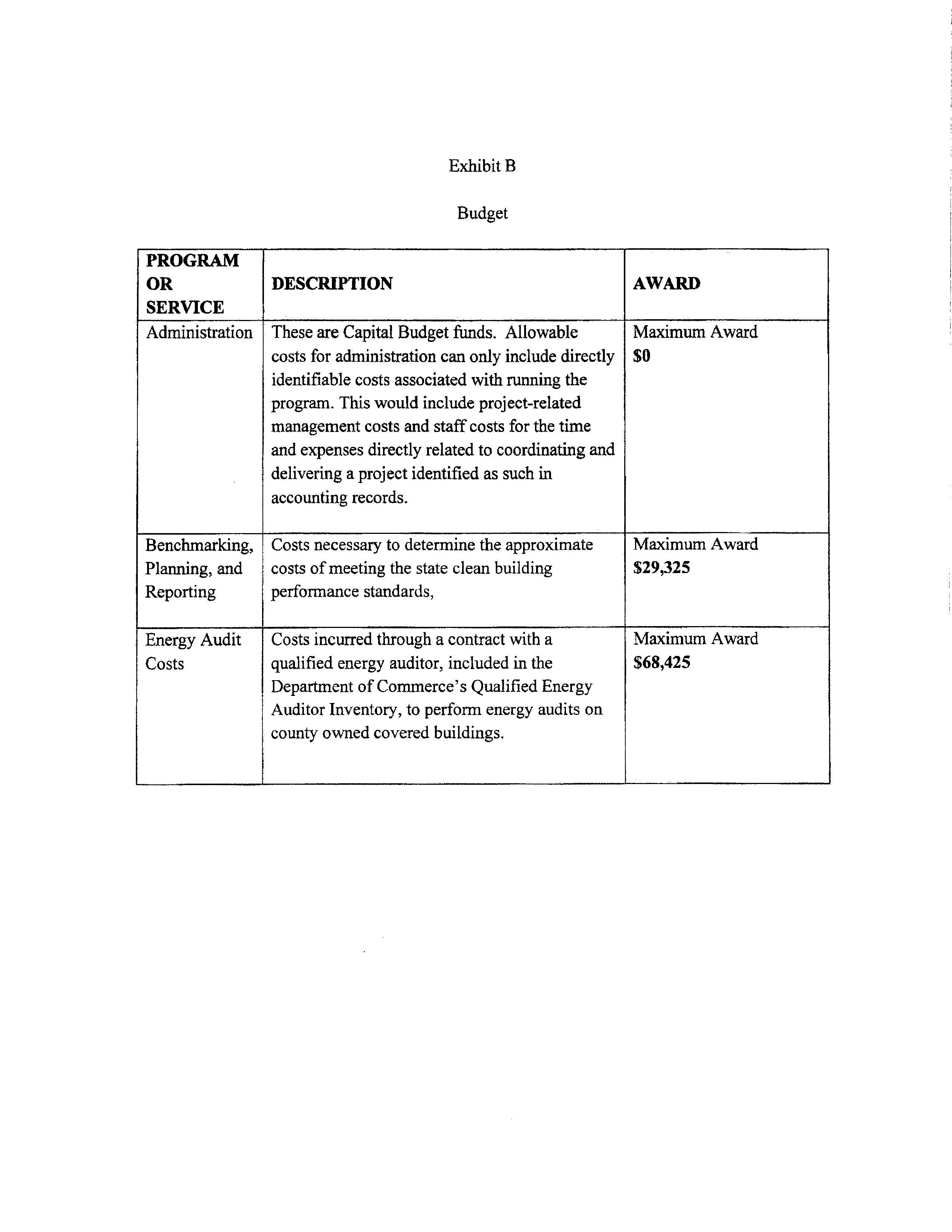This agreement between Cowlitz County, Department of Commerce, and the Washington State Association of Counties, is to provide energy audit reimbursement resources for the County to comply with the Clean Buildings Performance Standards concerning county owned covered buildings. The County has already completed the energy audit for the Cowlitz County Hall of Justice campus and will be seeking reimbursement up to $97,750.00 as stated in the agreement.