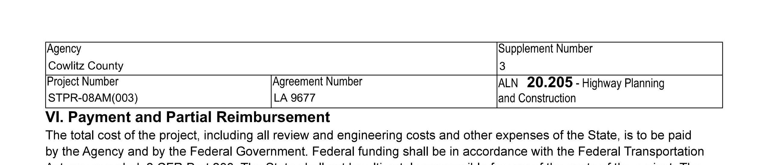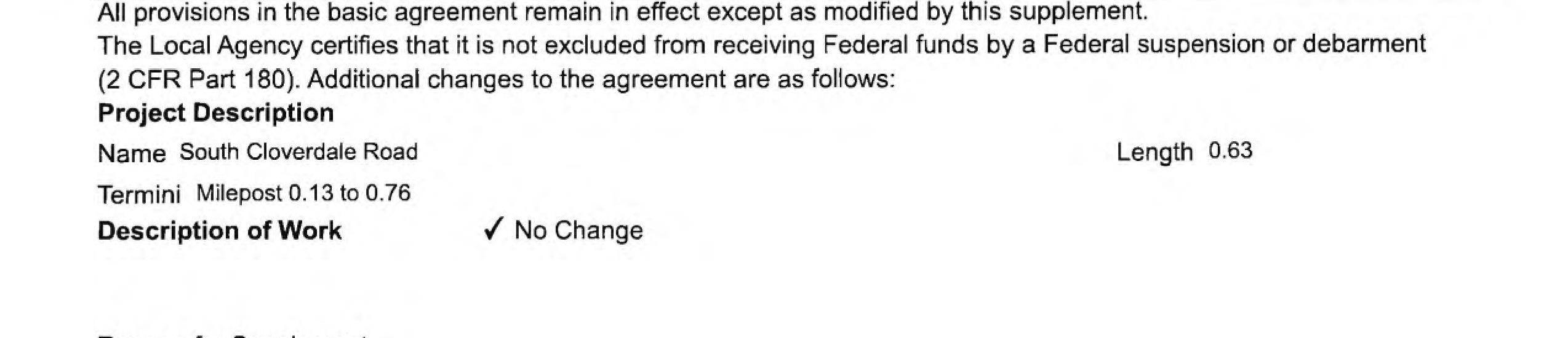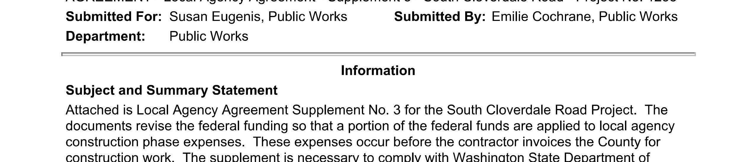 3. Local Agency Agreement Supplement No. 4 for the South Cloverdale Road Project remove the Kalama Water Main work from federal funding to local construction funds. (14241)