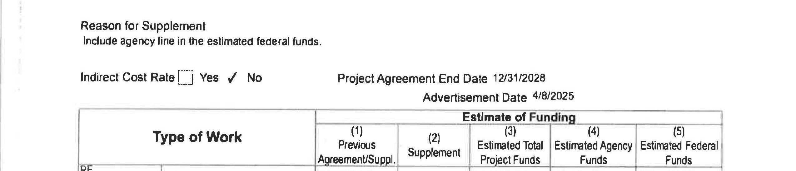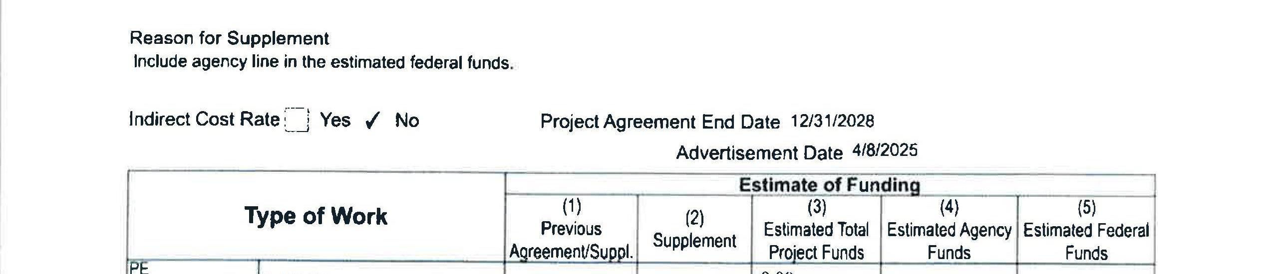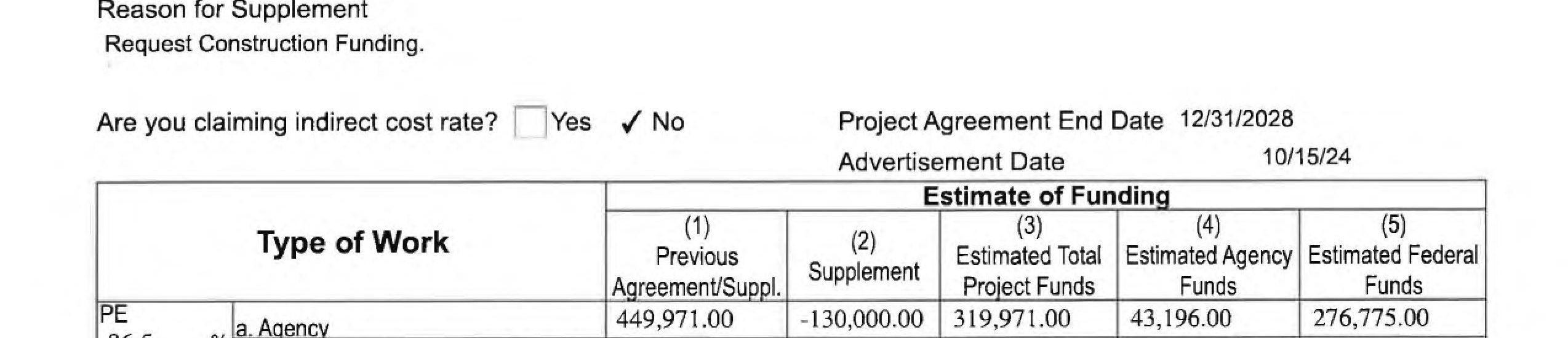 3. Local Agency Agreement Supplement No. 4 for the South Cloverdale Road Project remove the Kalama Water Main work from federal funding to local construction funds. (14241)