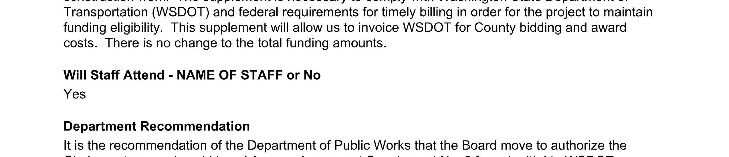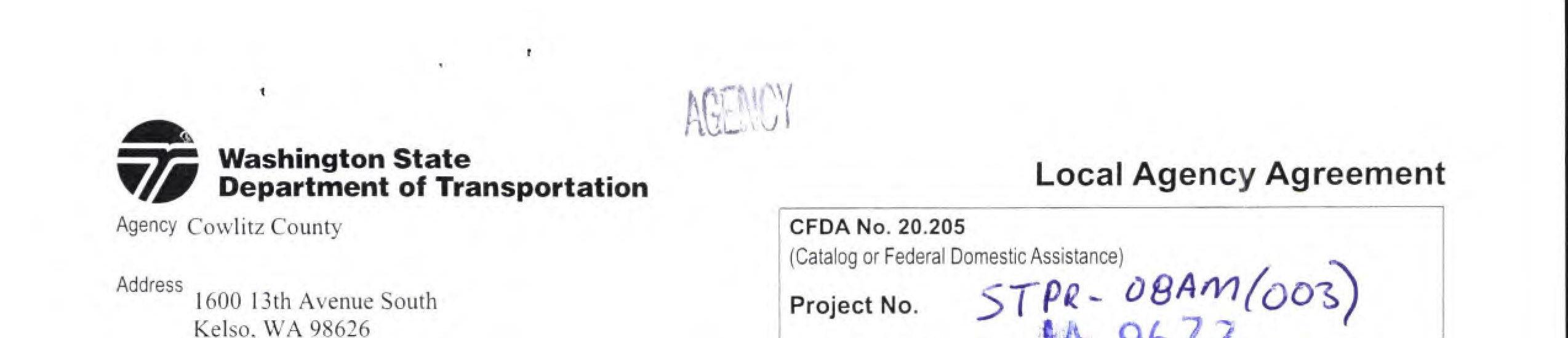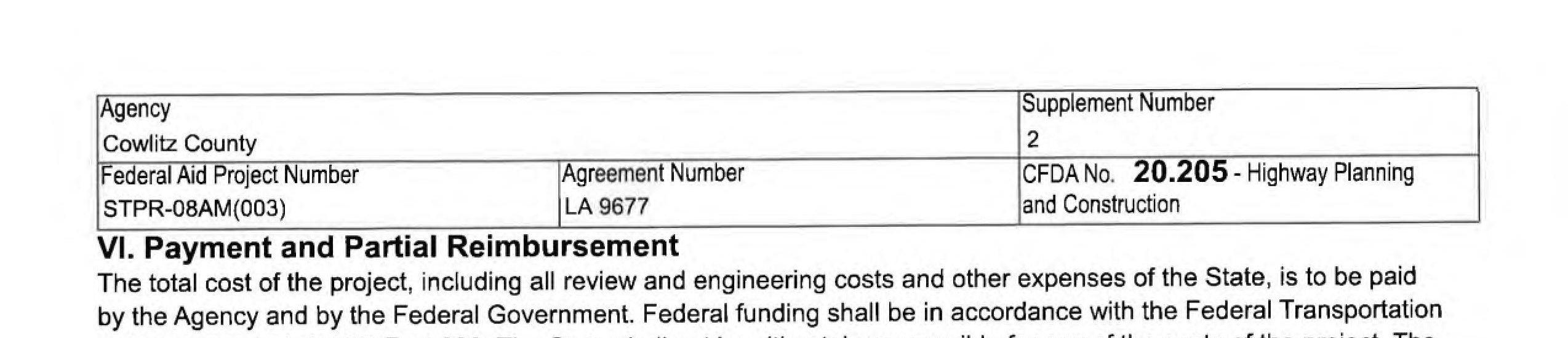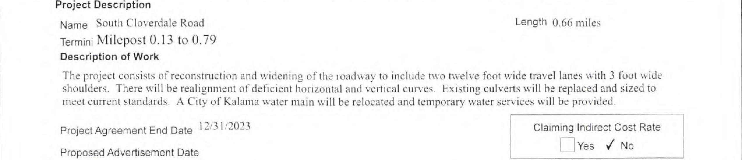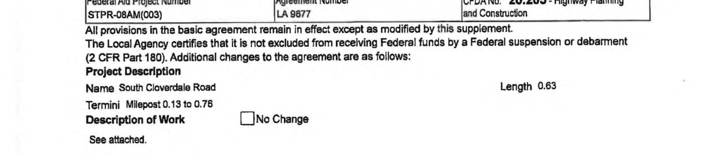 2. Local Agency Agreement Supplement No. 2 for the South Cloverdale Road/Confer Road Intersection Improvement Project to remove the Kalama Water Main work from federal funding to local construction funds. (14240)