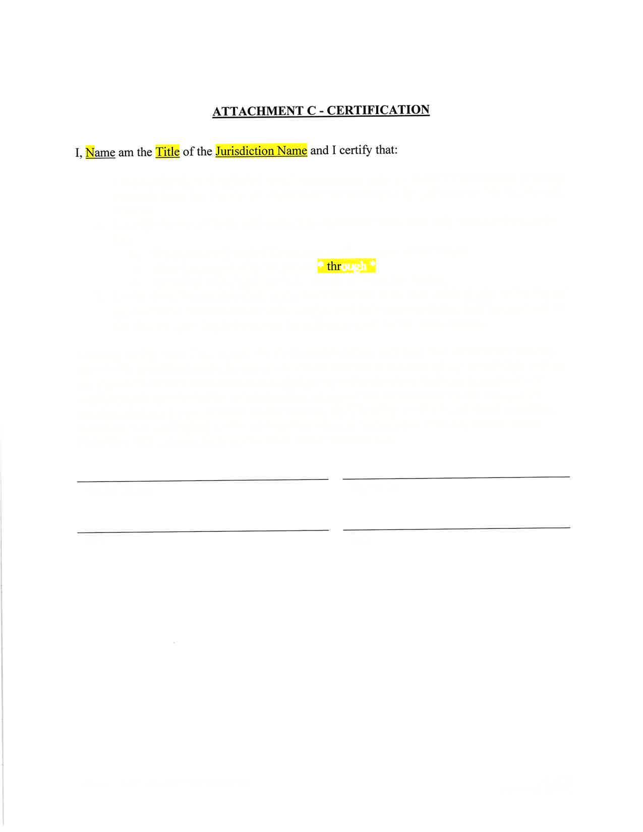 I hereby certify that I have read the above certification, and that the information and my statements provided herein by me are true and correct to the best of my knowledge, and by my signature on this document acknowledge my understanding that any intentional or negligent misrepresentation or falsification of any of the information in this document could subject me to punishment under federal, civil liability and/or in criminal penalties, including but not limited to fine or imprisonment or both under Title 18, United States Code Sec. 1001, et seq. And punishment under Federal law.