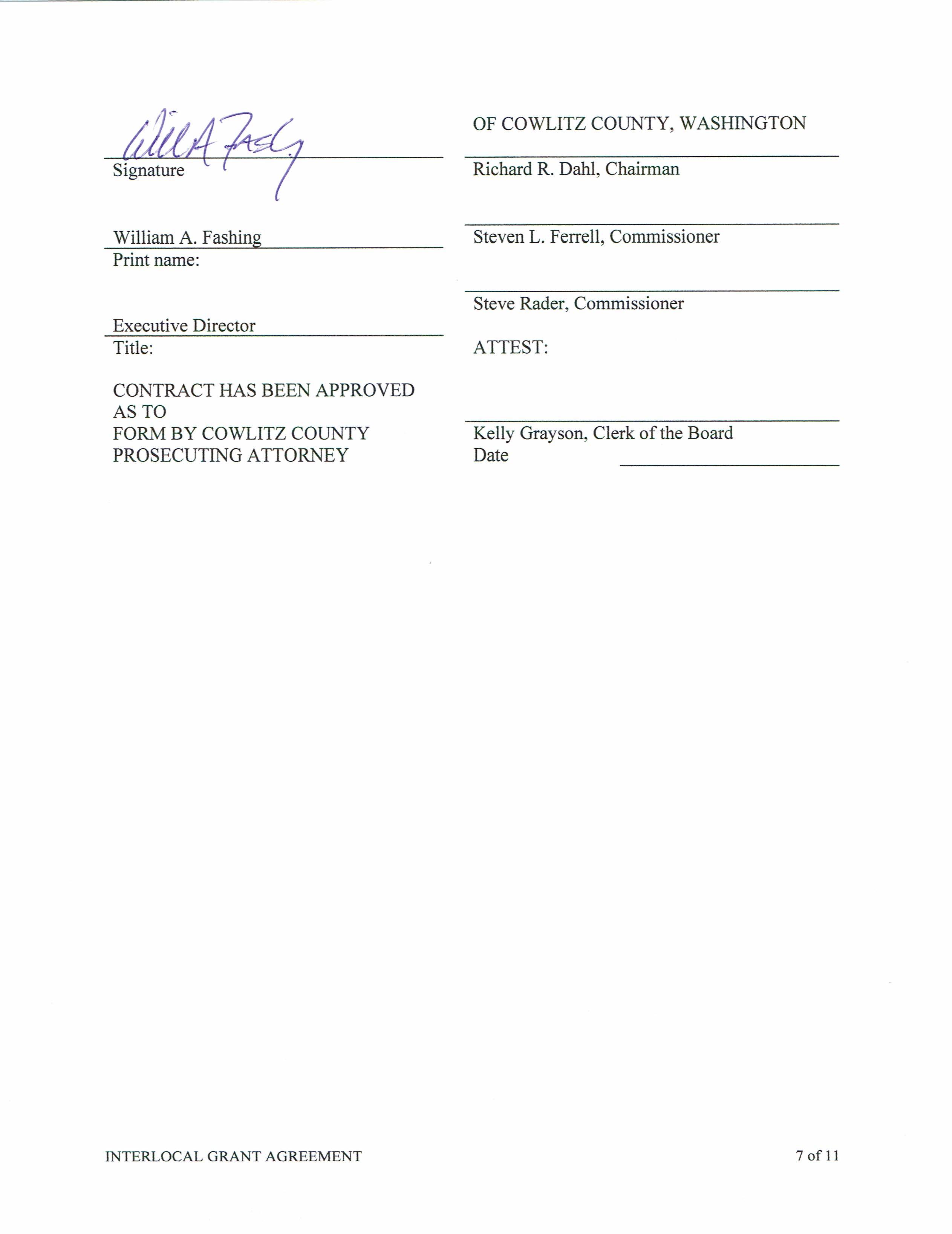 I, William A. Fashing am the Executive Director of the Cowlitz-Wahkiakum Council of Governments, and I certify that: