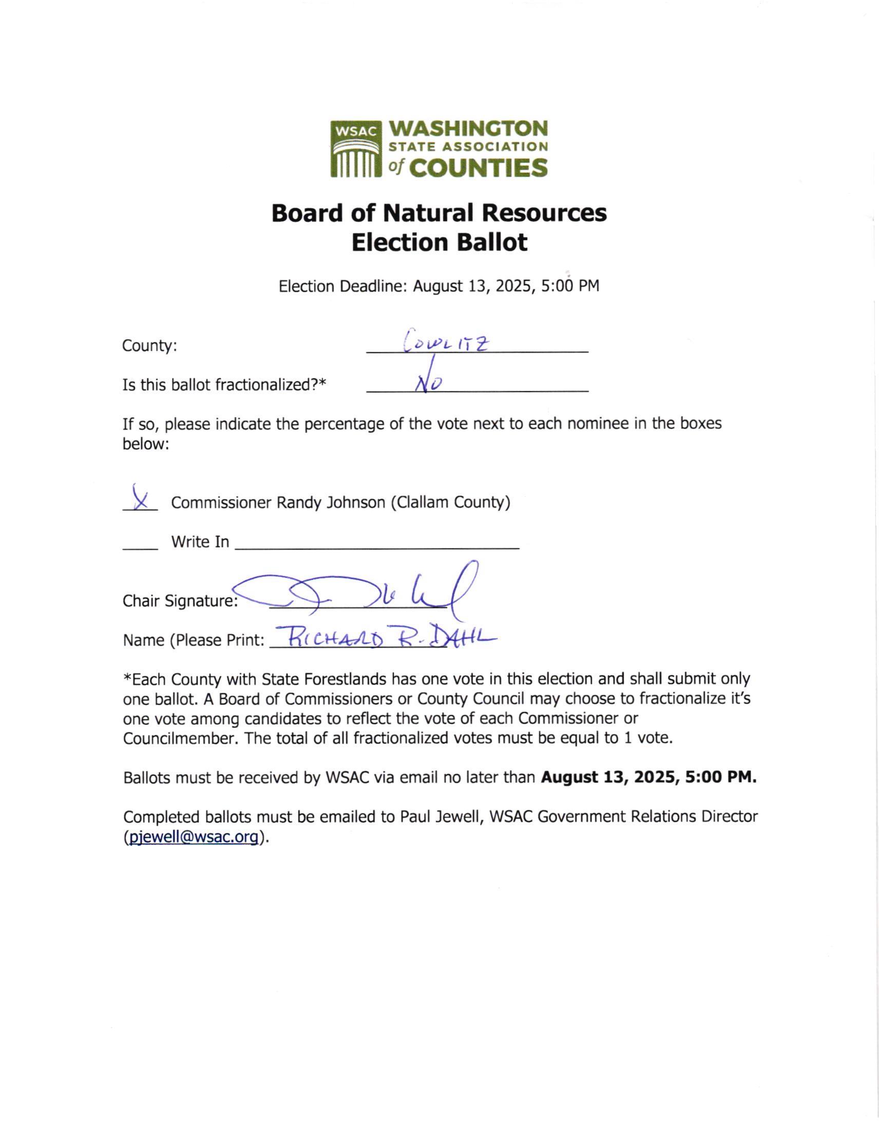 e. Completed and Signed Washington State Association of Counties (WSAC) Board of Natural Resources Election Ballot. (14309)
