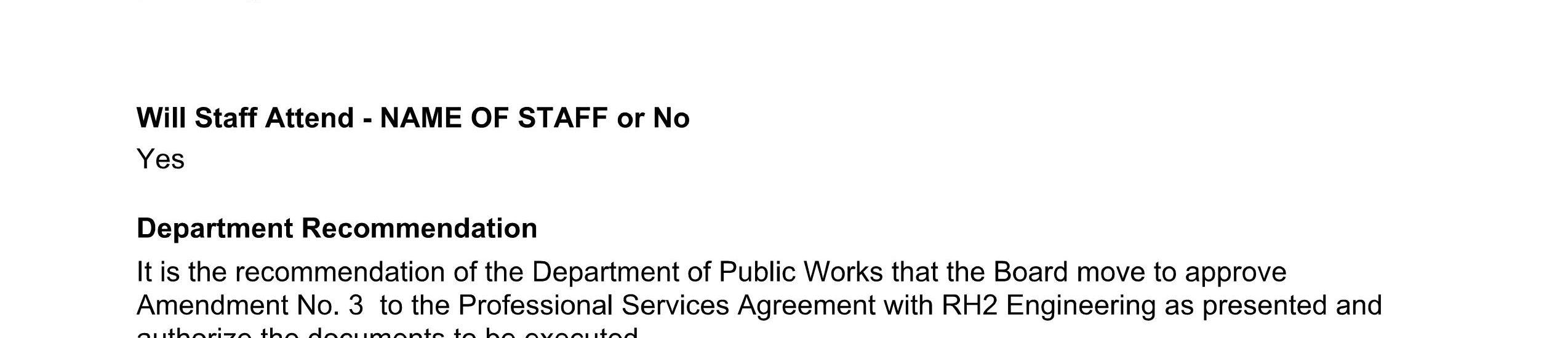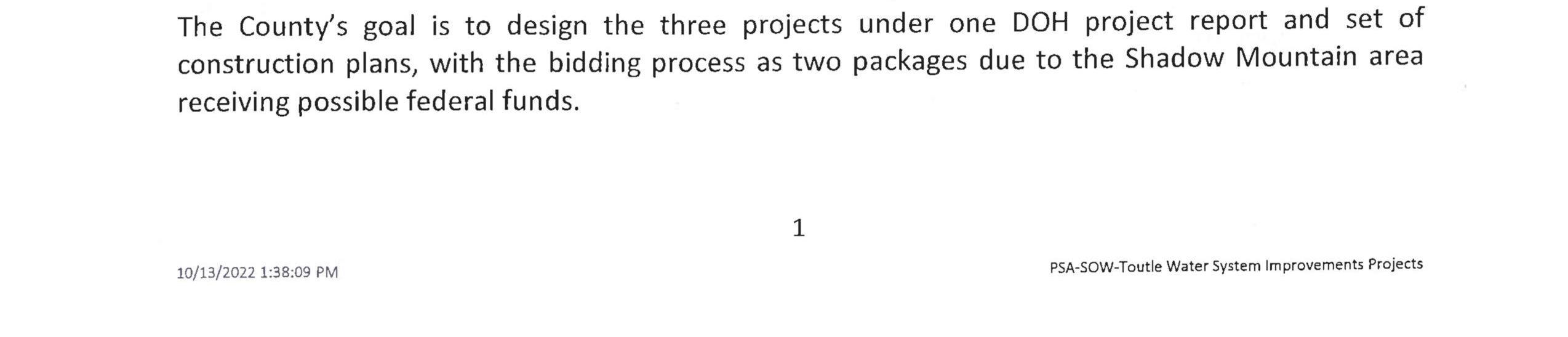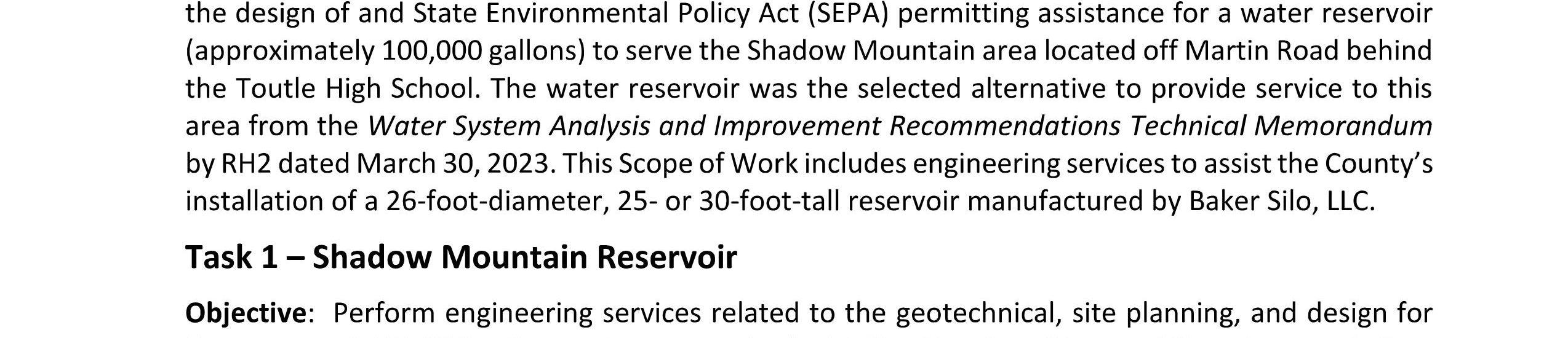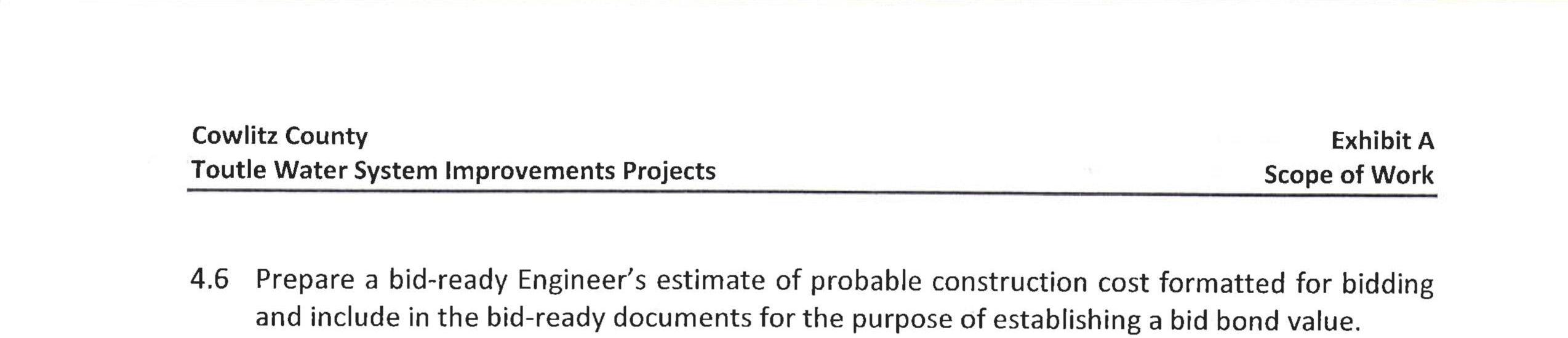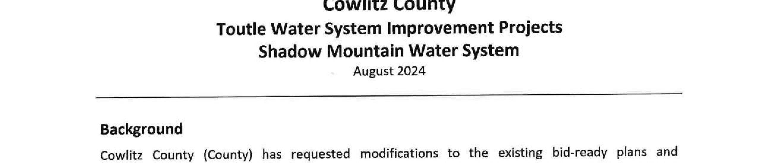 6. Amendment No. 5 to the Professional Services Agreement with RH2 Engineering for the Toutle Water System Improvement Projects for additional services during construction. The amendment will increase the not-to-exceed amount by $7,403, for a total of $507,289. (14336)