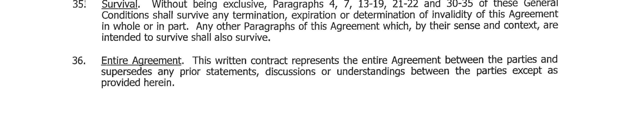 I. The parties hereby agree that the Agreement will terminate on October 30, 2025
