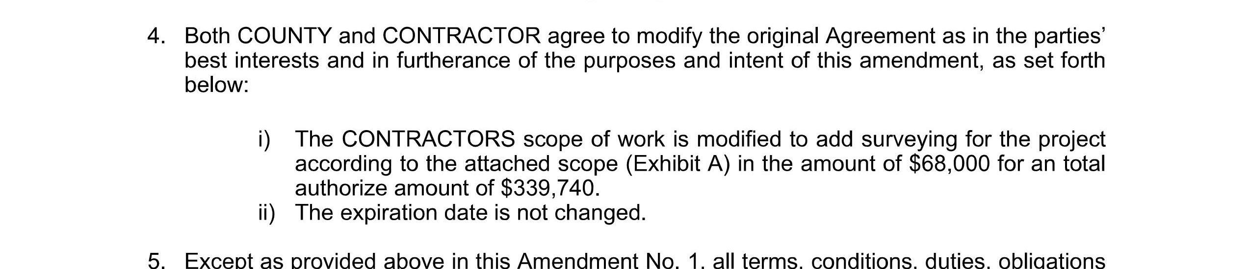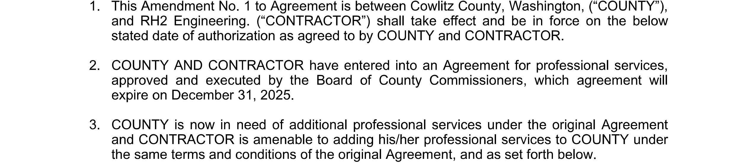NOW THEREFORE, County and Contractor agree to amend the Agreement as follows: