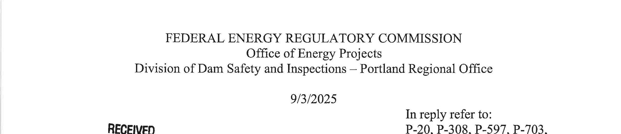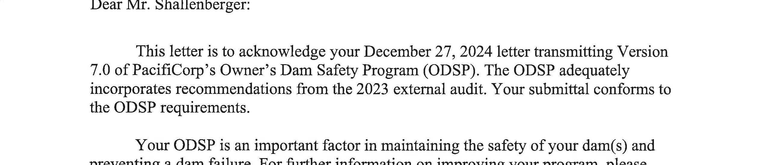 a. Federal Energy Regulatory Commission (FERC) Notice dated 9/8/25 regarding Version 7.0 of PacifiCorp’s Owner’s Dam Safety Program (ODSP). (14342)