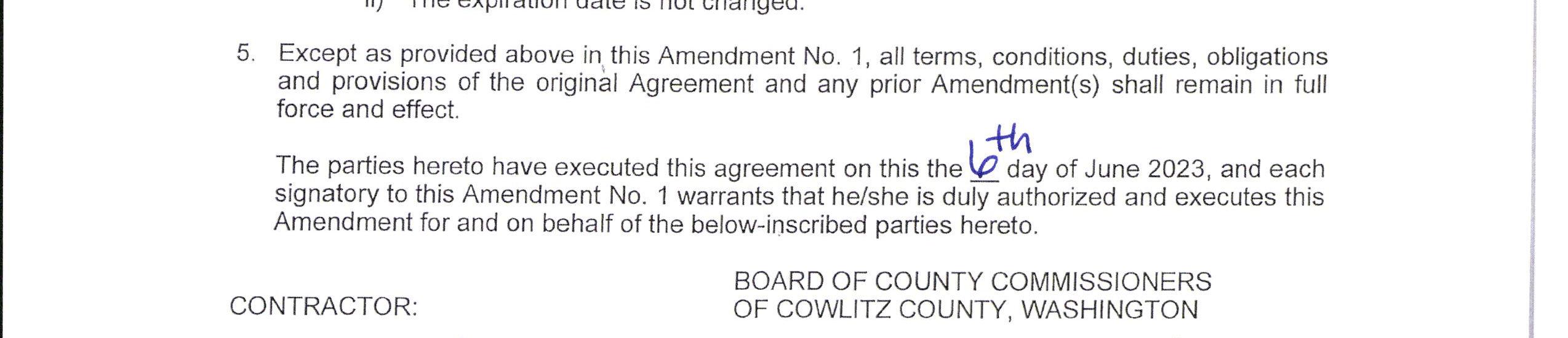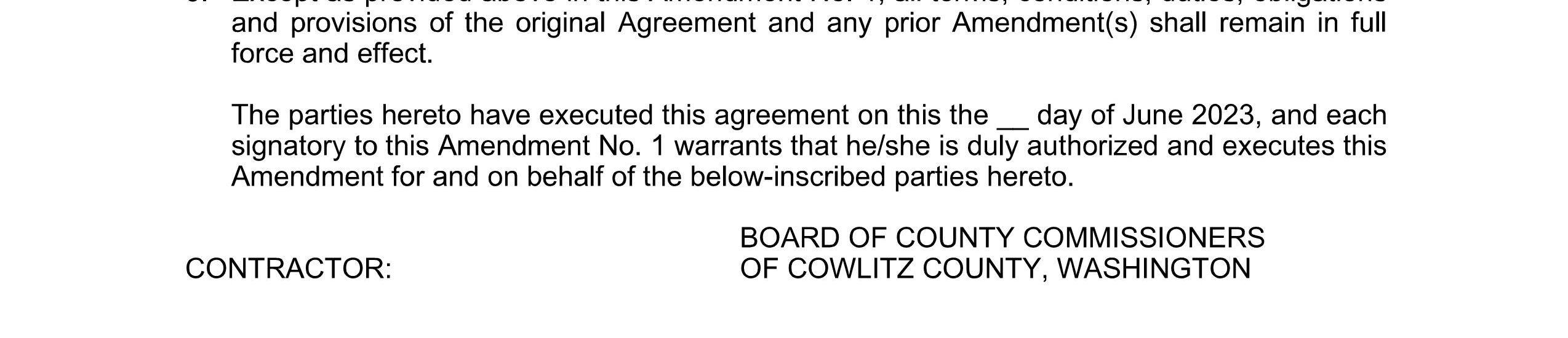 CONTRACT AMENDMENT FORM HAS BEEN APPROVED BY COWLITZ COUNTY PROSECUTING ATTORNEYS OFFICE