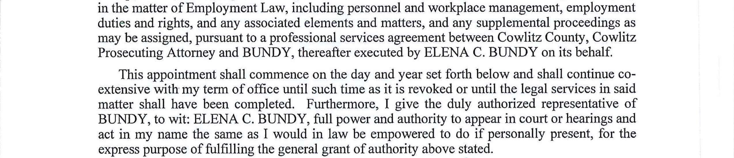 5. Agreement for Special Deputy Prosecutor Services with Elena C. Bundy, Attorney with Bundy Law Group, PLLC to provide Professional Services to the County with Employment Law. (14348)