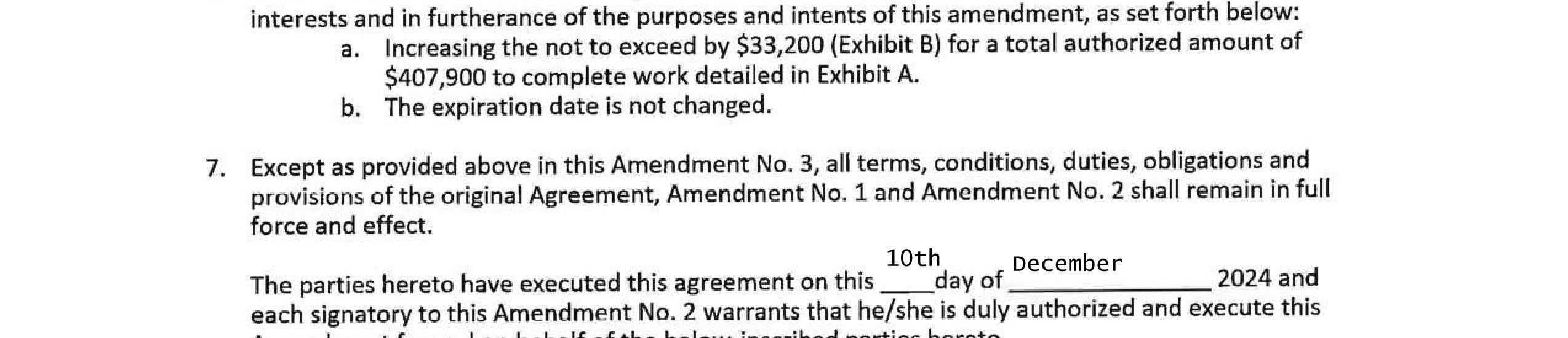II. The parties hereby agree to amend the current compensation payable to Contractor as follows effective October 1, 2025: