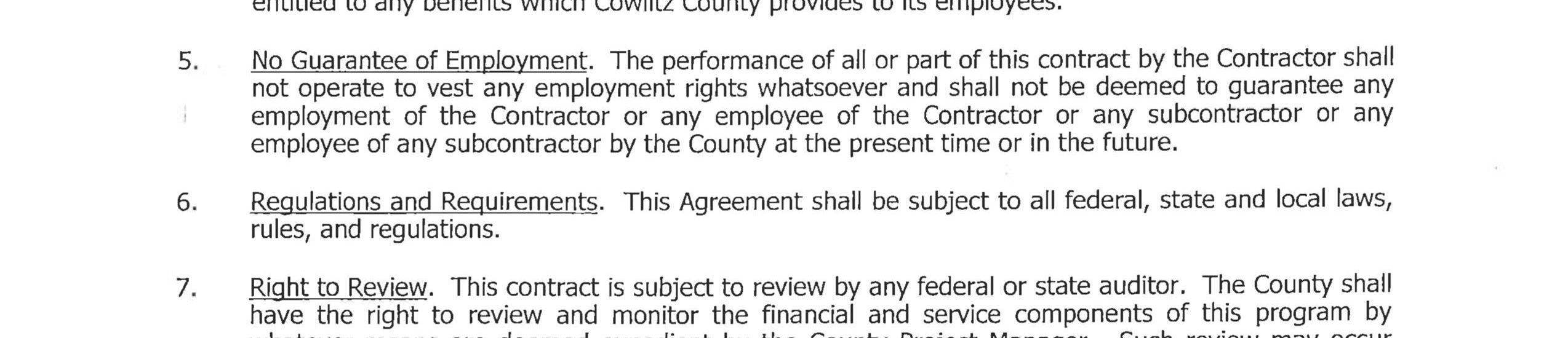 WHEREAS, County and NaphCare, Inc. (“NaphCare”) entered into a Personal Services Agreement, Contract Number 03012020 on February 25, 2020 (“Agreement”), wherein NaphCare provided inmate health care services at the Cowlitz County Corrections Department facilities;