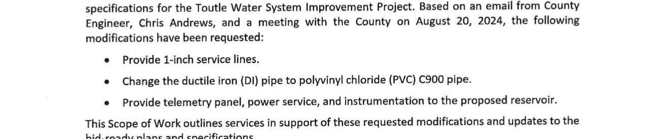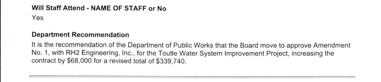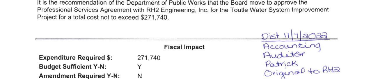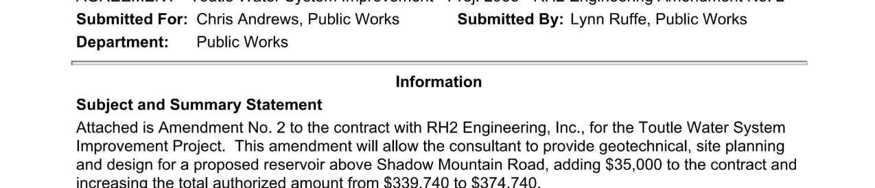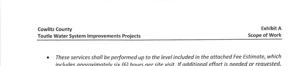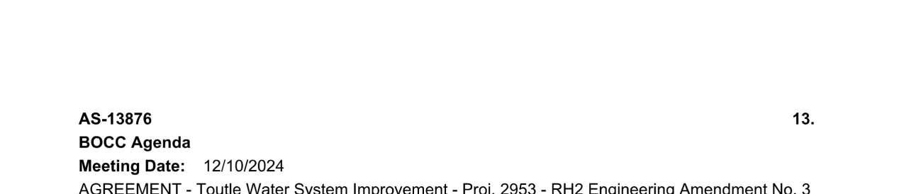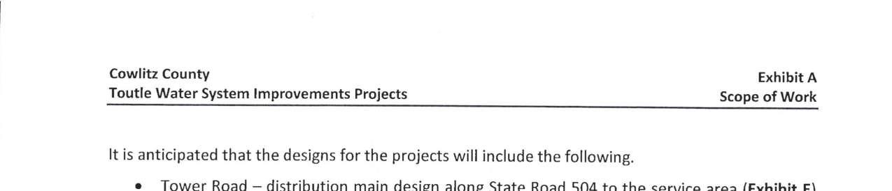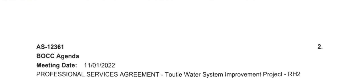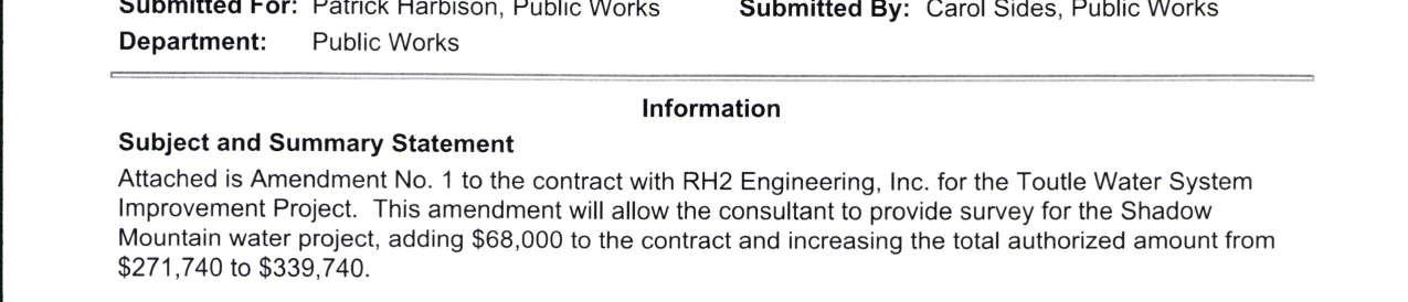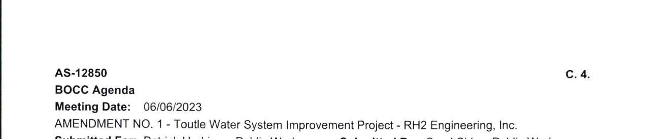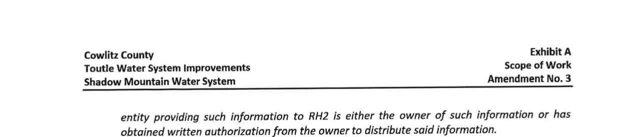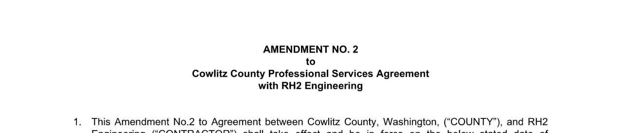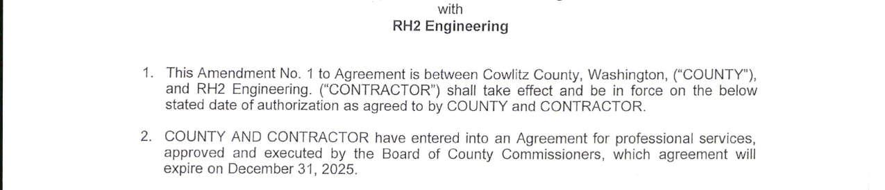 8. Amendment No. 4 to the Professional Services Agreement with RH2 Engineering for the Toutle Water System Improvement Projects to extend the contract expiration date to June 30, 2026, and to increase the not-to-exceed amount by $91,886 for a total amount of $499,886. (13944)