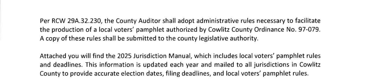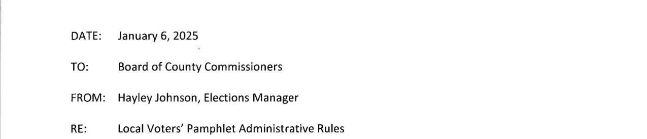a. Letter dated 1/6/2025 from Hayley Johnson, Elections Manager, regarding the Local Voters' Pamphlet Administrative Rules. (13952)
