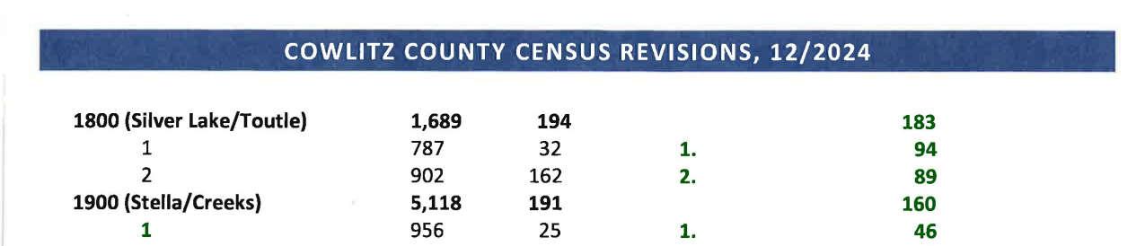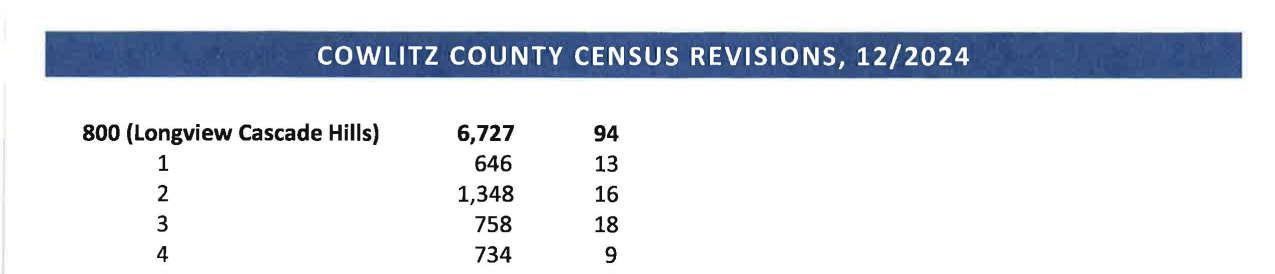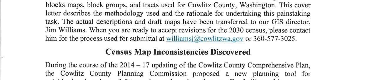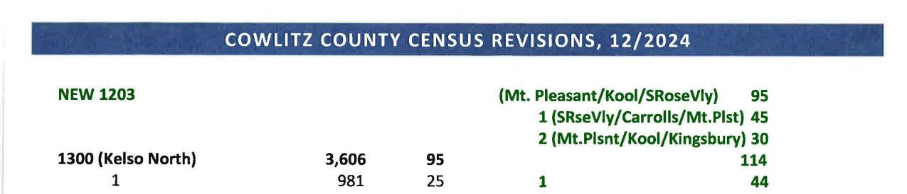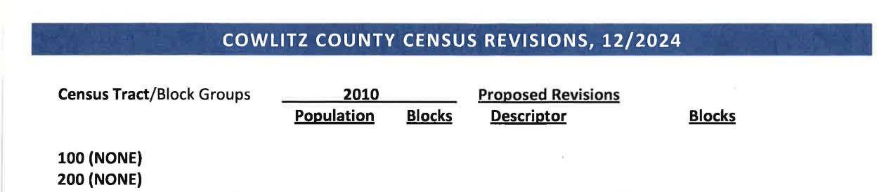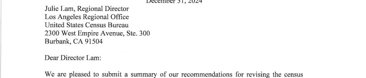 c. Letter dated 12/31/2024 to Julie Lam, Regional Director from the Los Angeles Regional Office United States Census Bureau regarding the summary of recommendations for revising the census blocks maps, block groups, and tracts used for Cowlitz County, Washington. (13954)