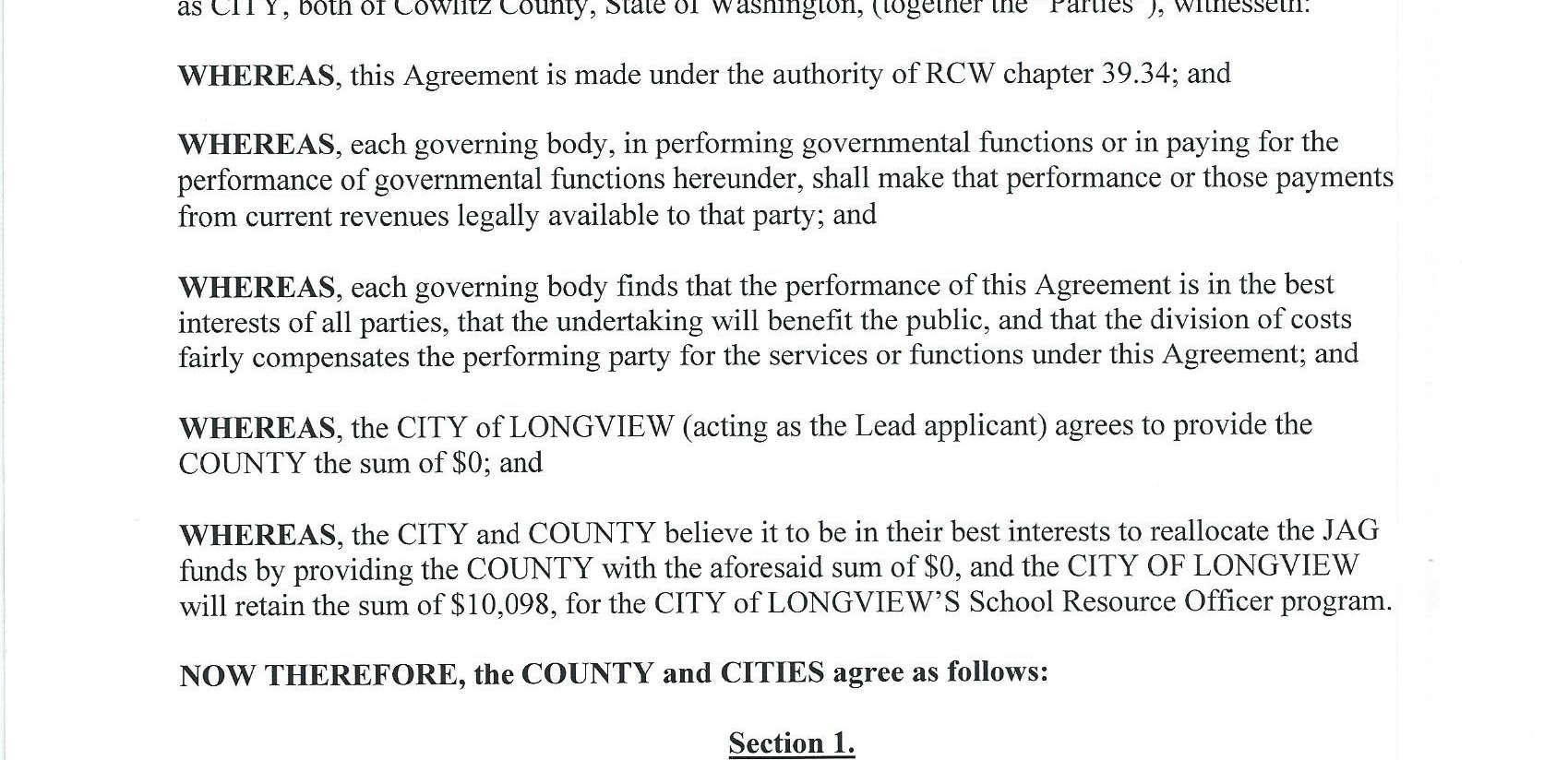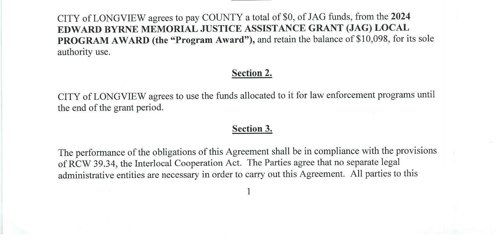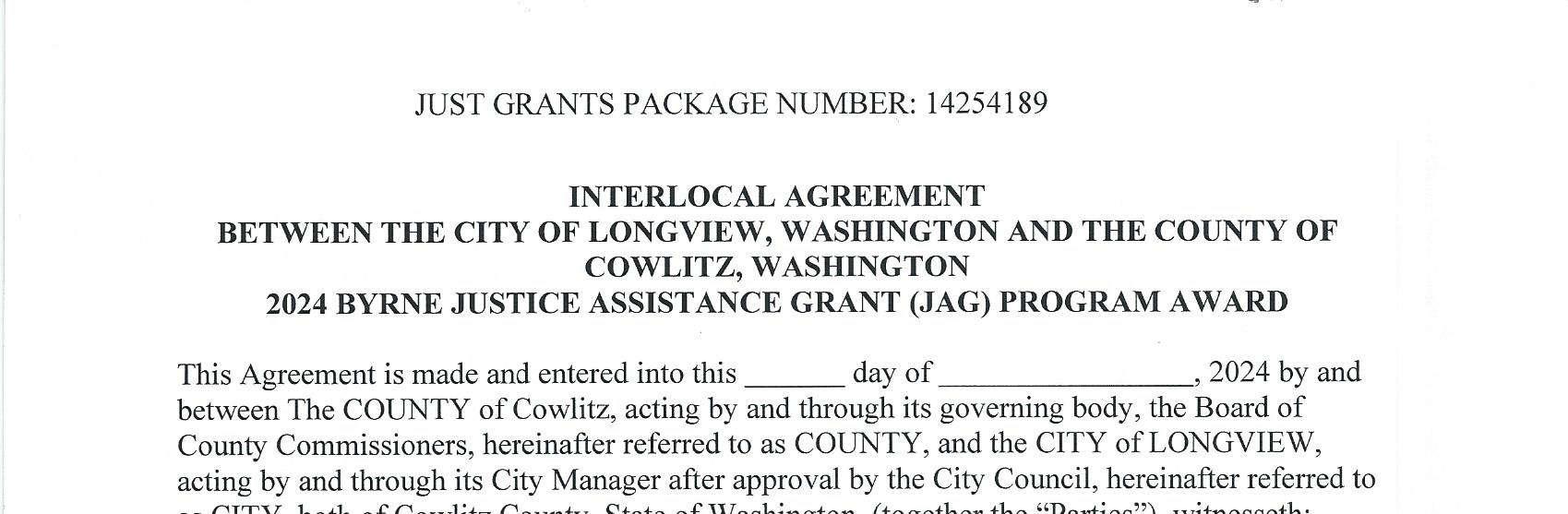 1. Interlocal Agreement with the City of Longview for the 2024 Byrne Justice Assistance Grant (JAG) Program Award. The total grant amount is $10,098. (13744)
