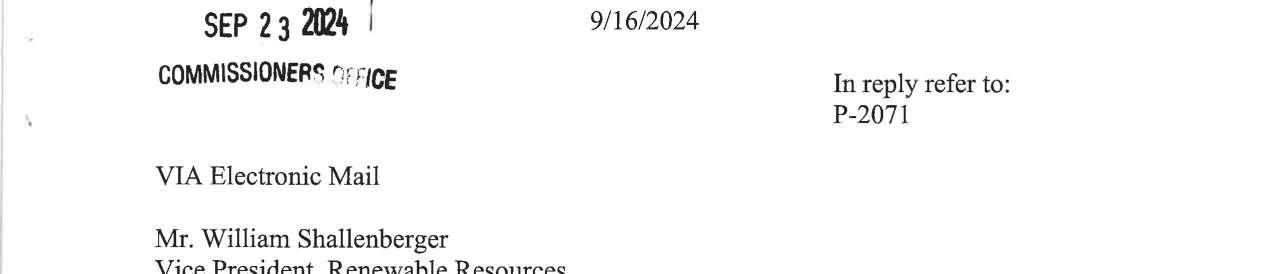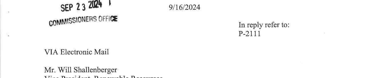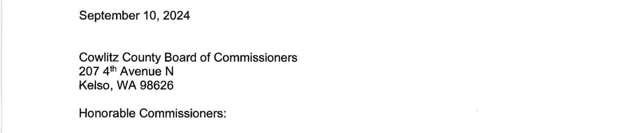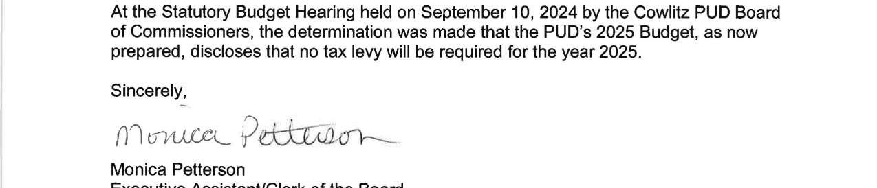 a. Letter dated 9/10/2024 from Monica Petterson, Executive Assistant/Clerk of the Board with the Public Utility District No. 1 of Cowlitz County, Washington regarding the determination of the PUD’s 2025 Budget. (13746)