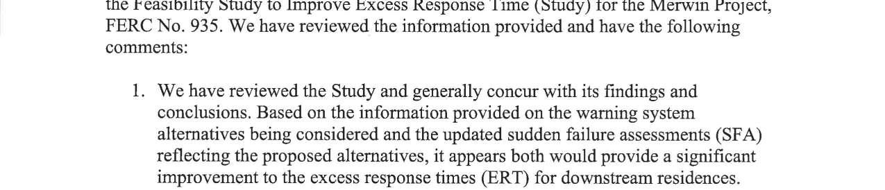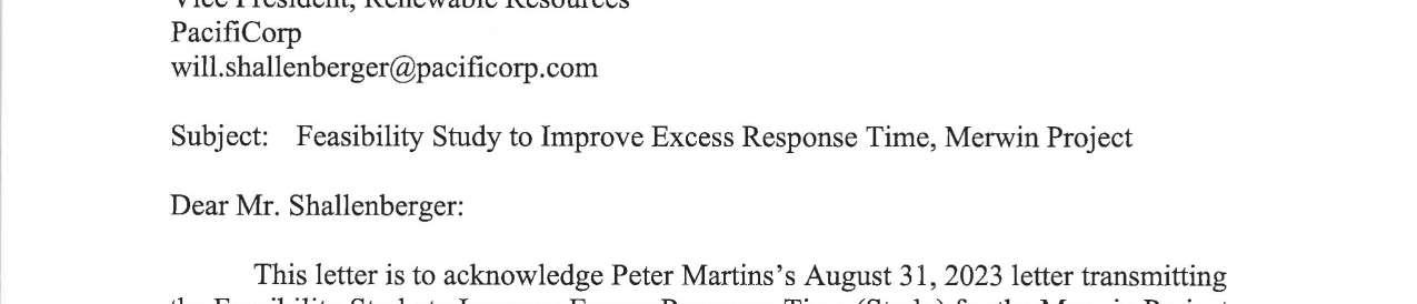 d. Federal Energy Regulatory Commission (FERC) Notice dated 9/16/2024 regarding Feasibility Study to Improve Excess Response Time, Merwin Project. (13749)