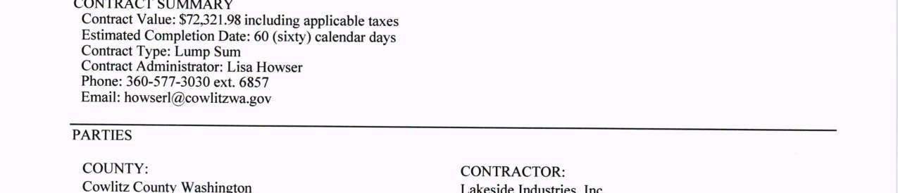 4. Bid Award and Contract Execution to Lakeside Industries for the asphalt replacement of the tennis and basketball courts at Riverside Park. The total amount is $72,321.98. (13754)