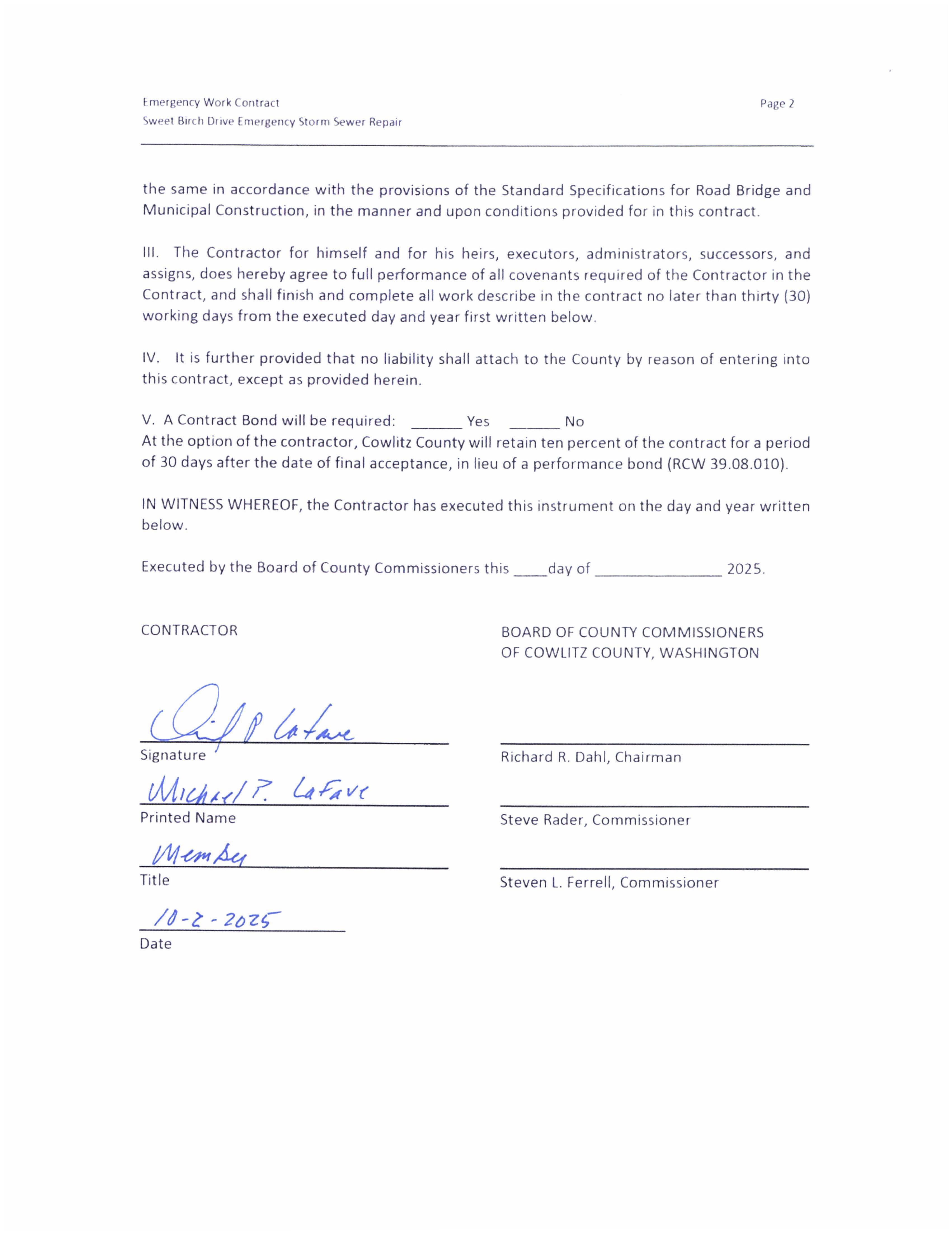4. Contract Completion Letter to Lakeside Industries for the 2025 Countywide Pavement Overlay project. The total project is $2,908,870.72. (14402)