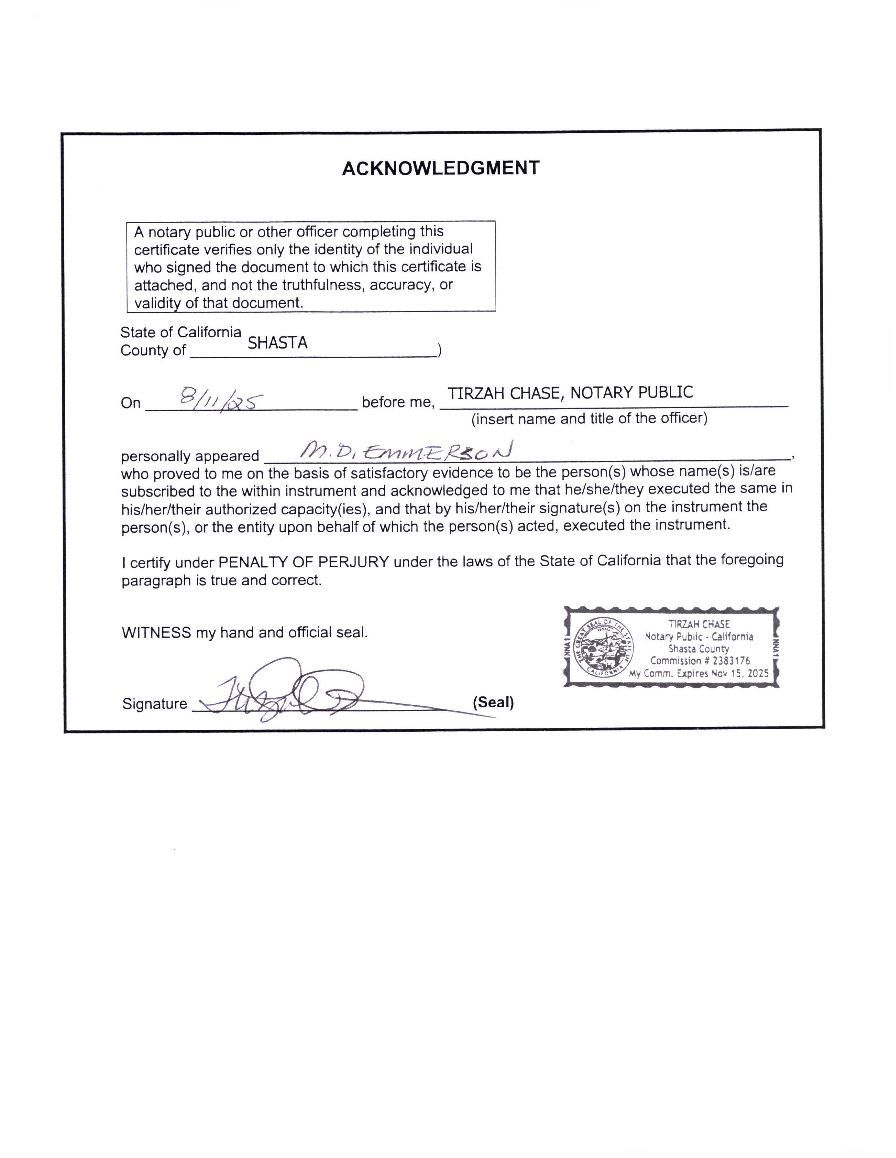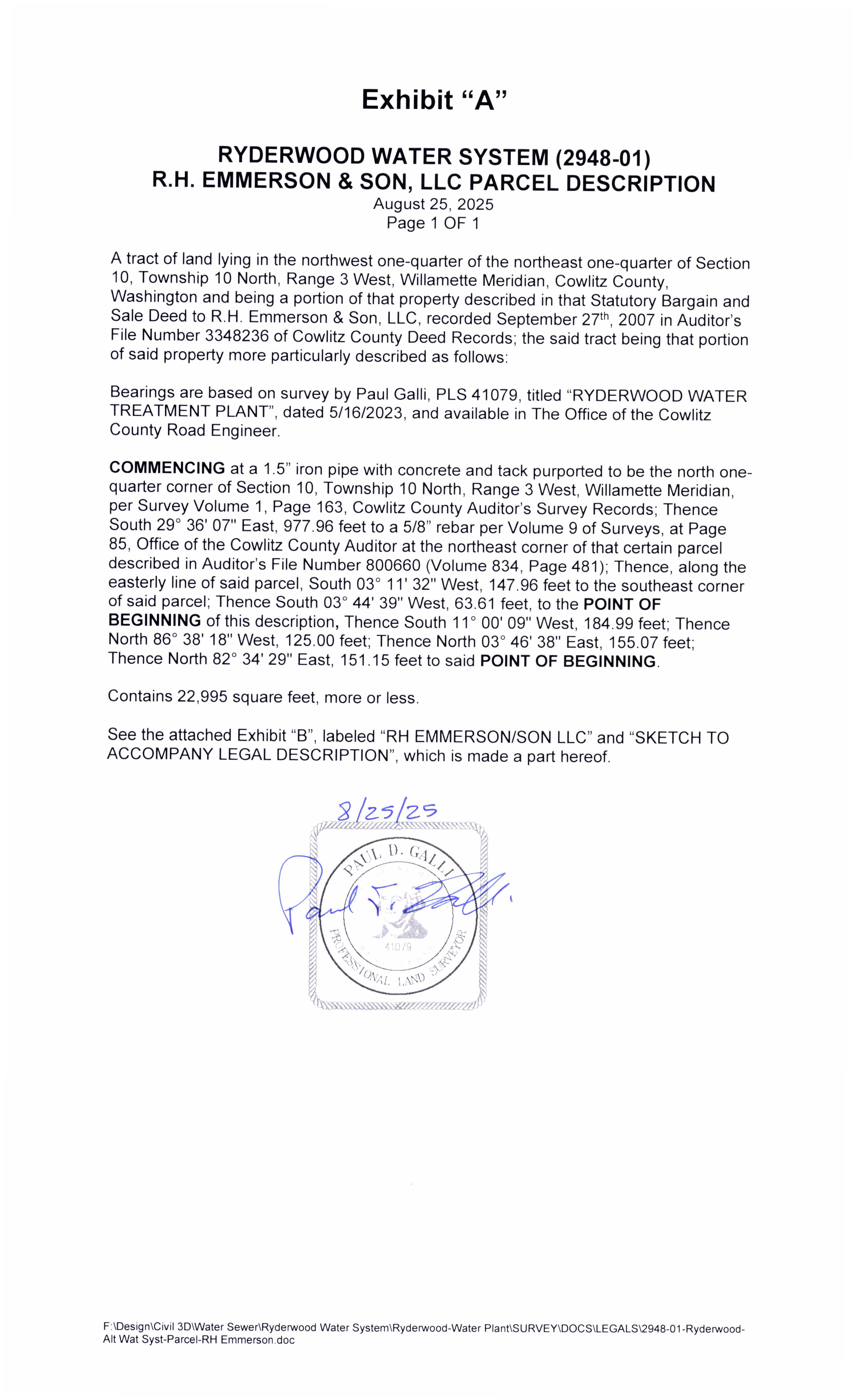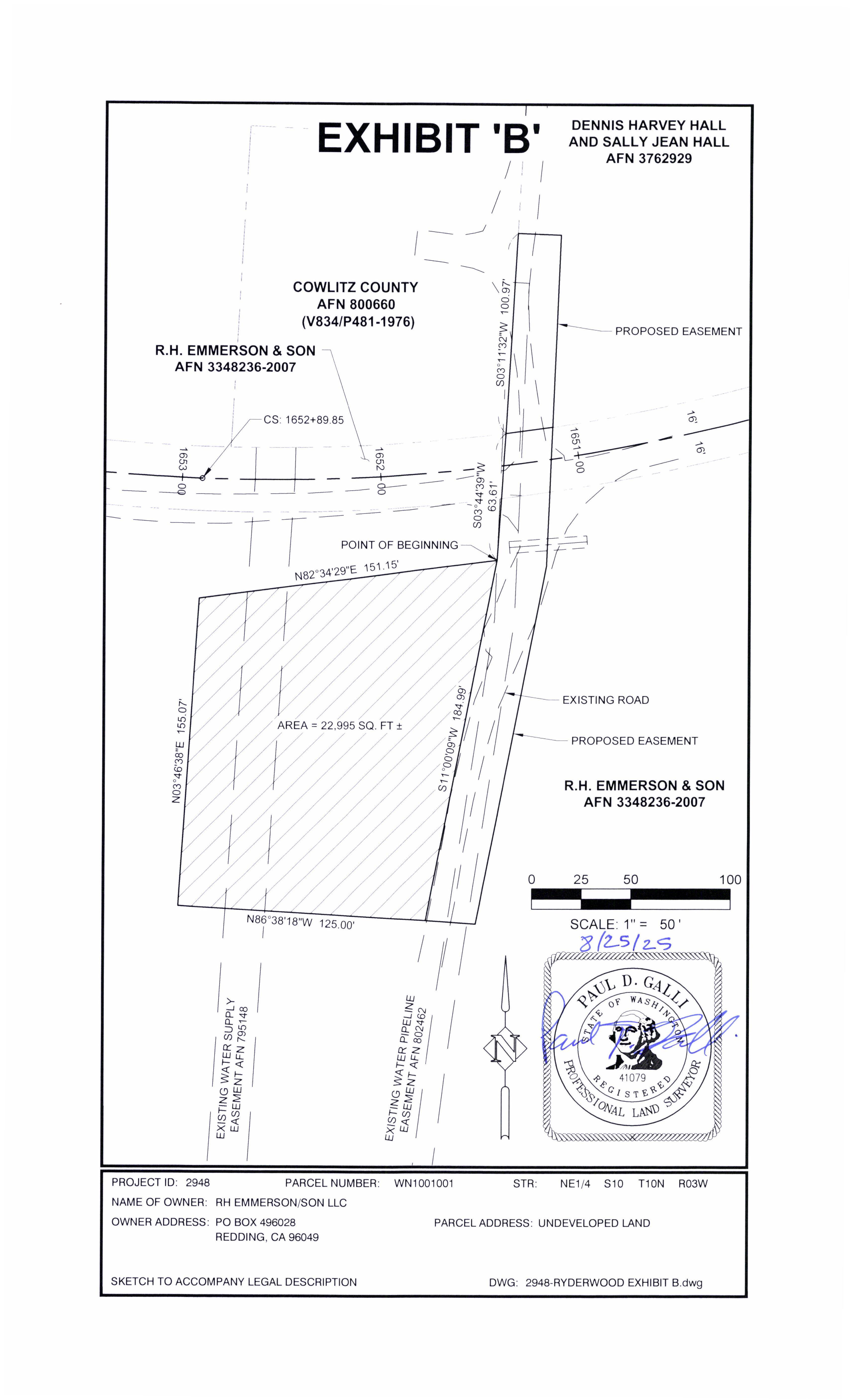 b. Recorded Perpetual Road and Utility Easement from R.H. Emmerson for the Ryderwood Supplemental Water Source to address drought resiliency for the residents of Ryderwood, WA. (14424)