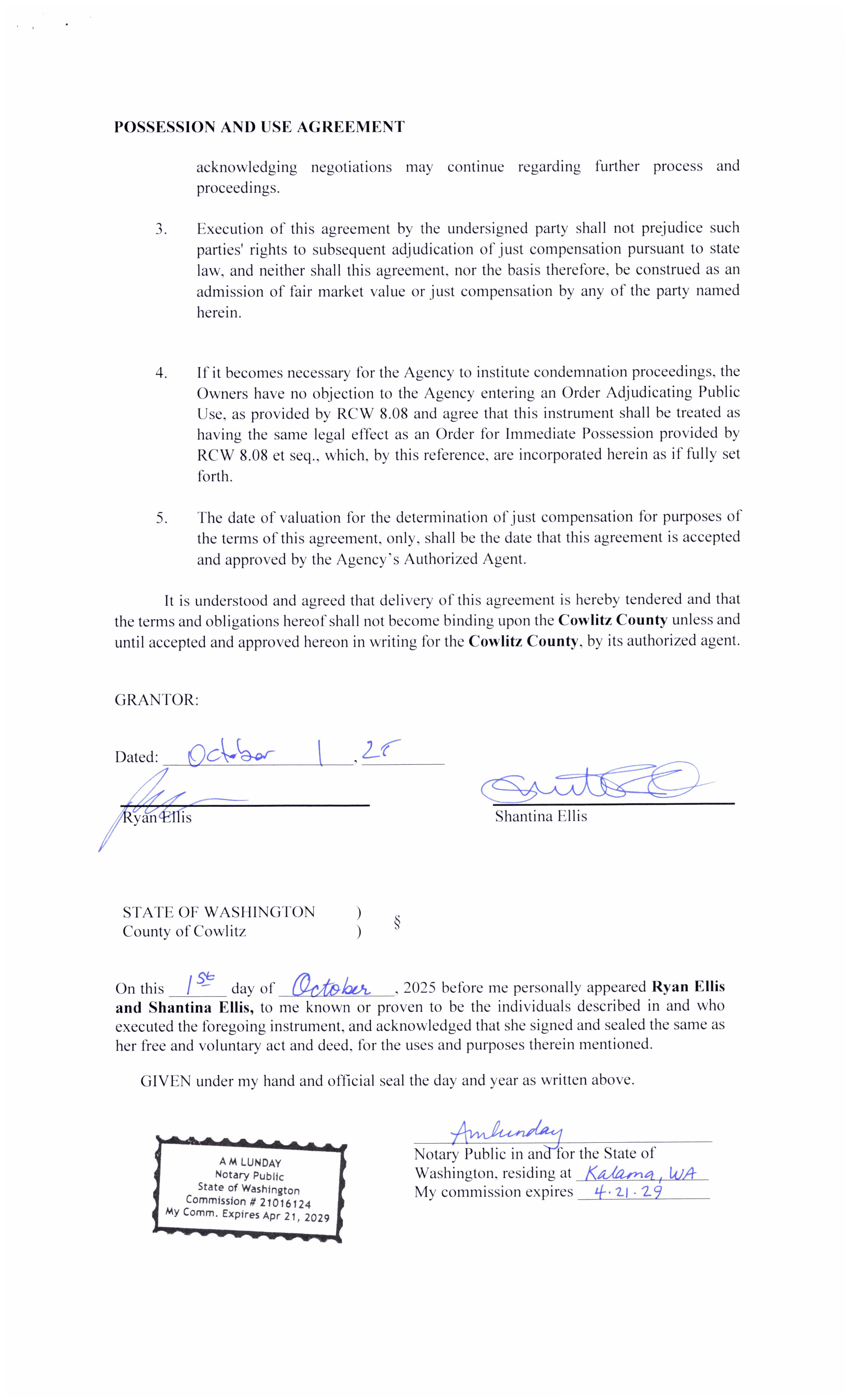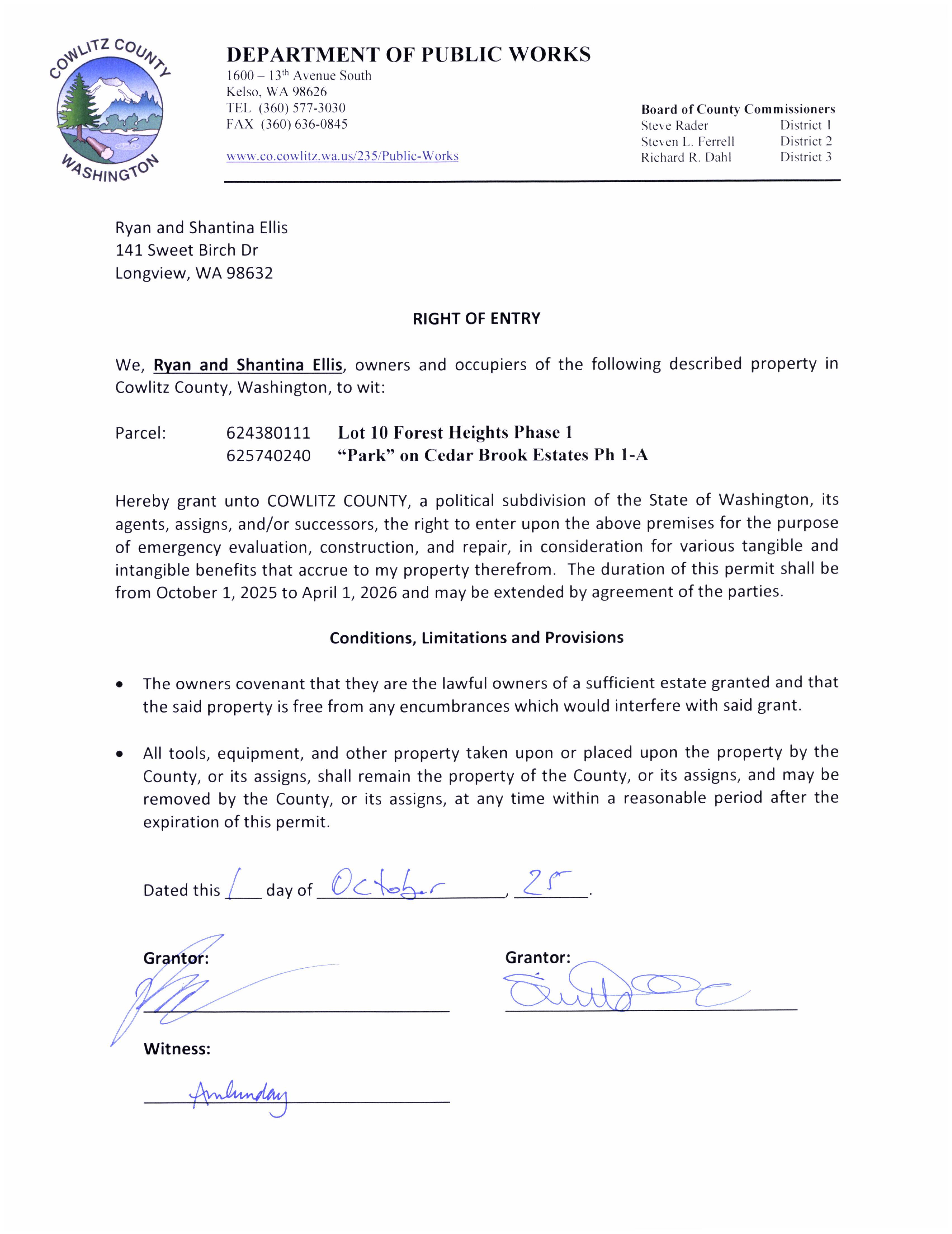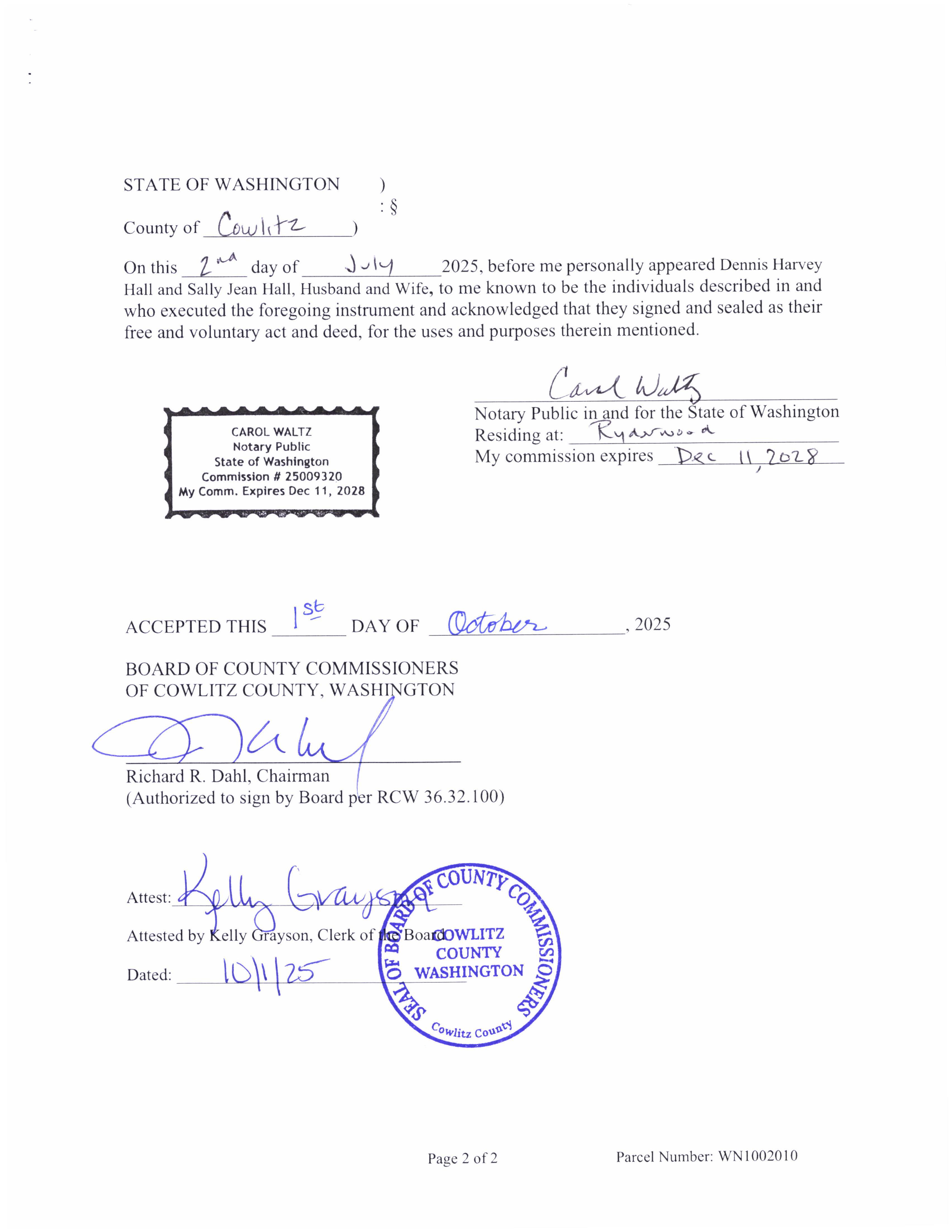 d. Recorded Perpetual Road and Utility Easement from Dennis and Sally Hall for the Ryderwood Supplemental Water Source to address drought resiliency for the residents of Ryderwood, WA. (14426)