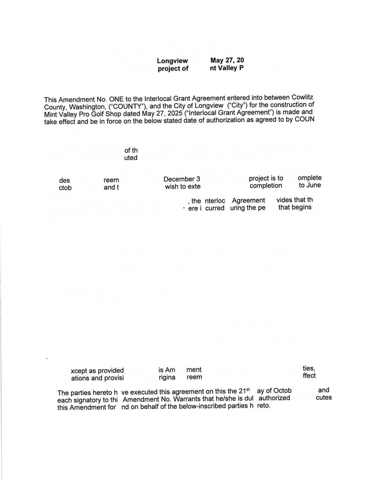 10. Amendment One to the Interlocal Grant Agreement with the City of Longview for the Minit Valley Pro Golf Shop Roof and Siding Replacement to extend the end date of the agreement to June 30, 2026. (14414)