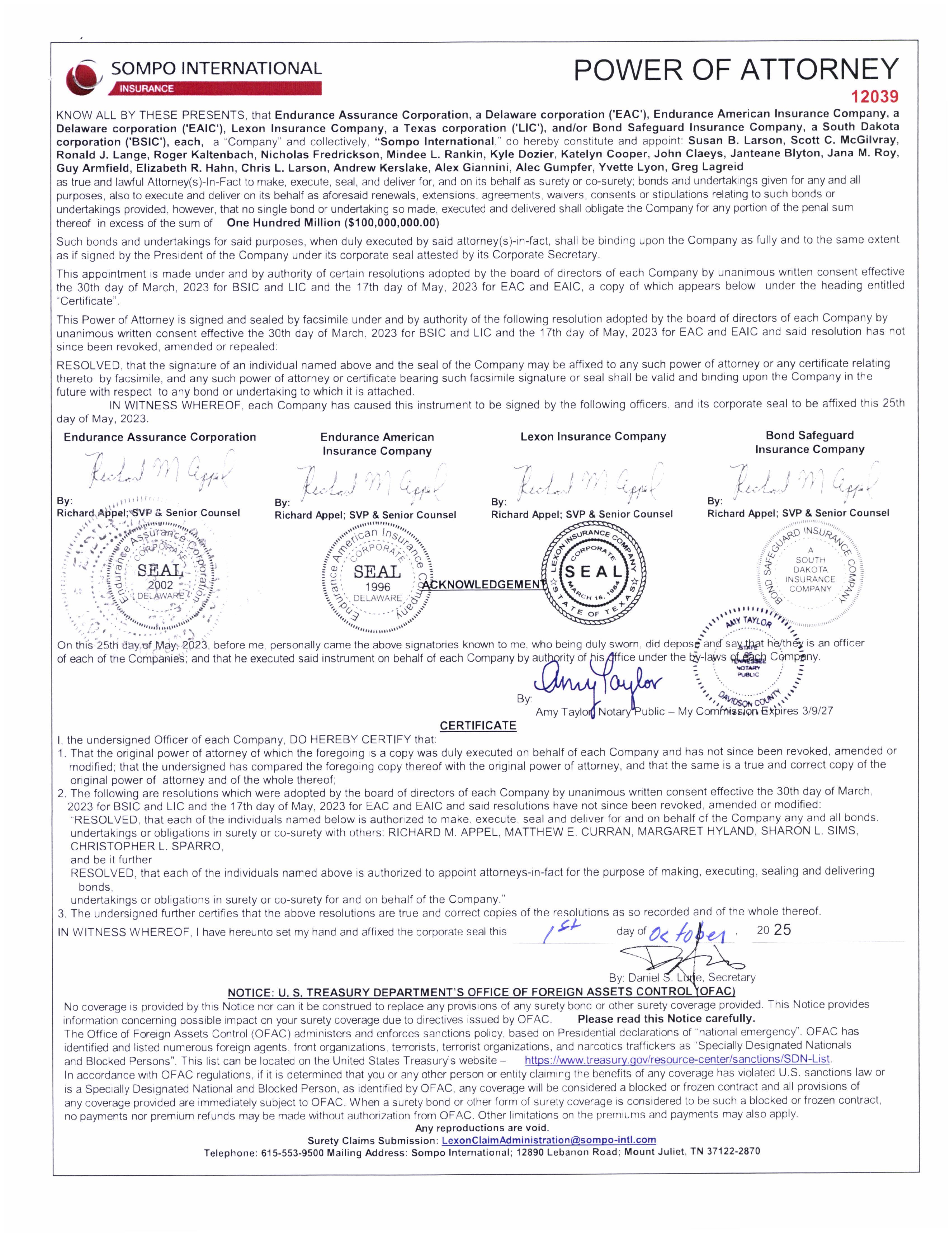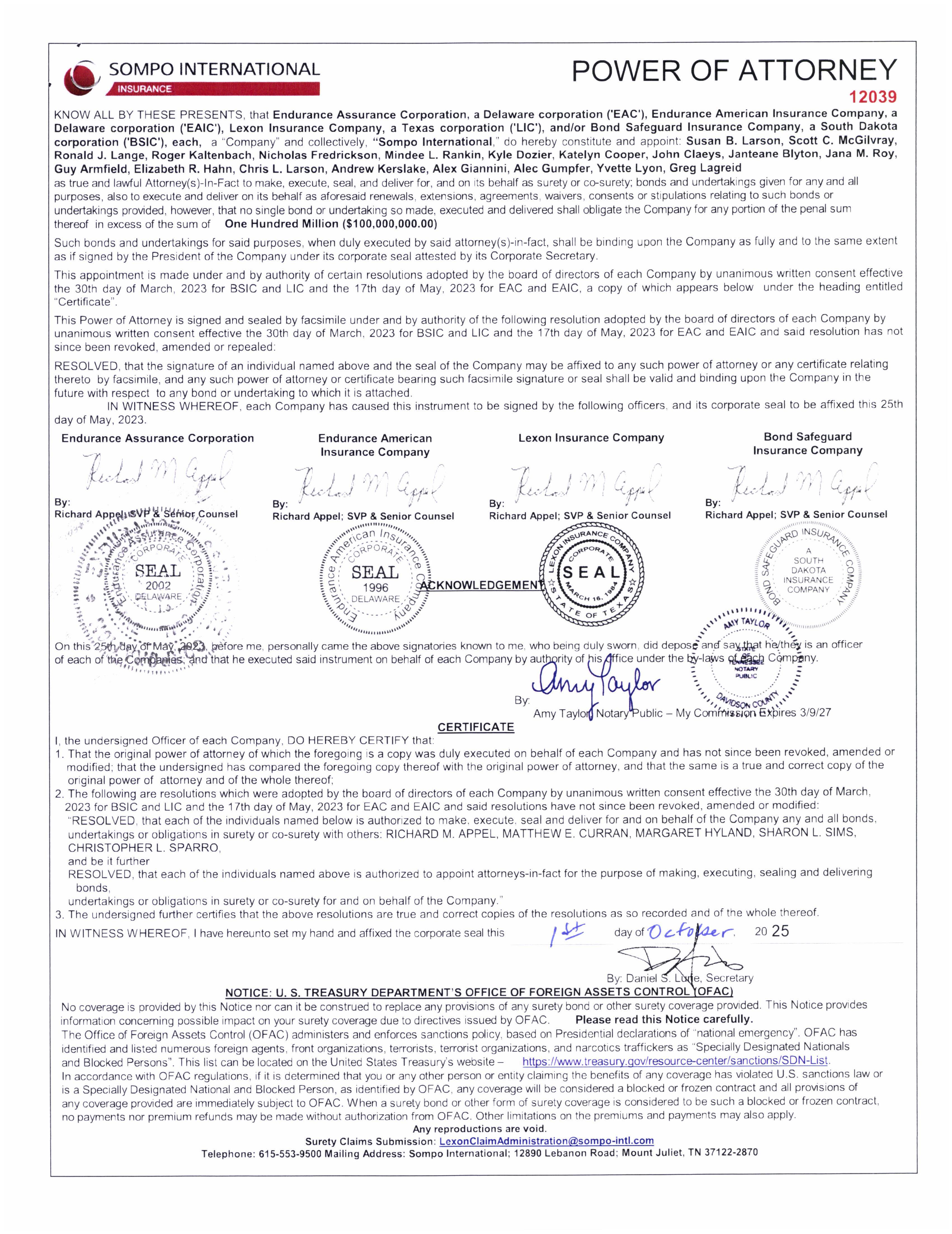 SHOULD ANY OF THE ABOVE DESCRIBED POLICIES BE CANCELLED BEFORE THE EXPIRATION DATE THEREOF, NOTICE WILL BE DELIVERED IN ACCORDANCE WITH THE POLICY PROVISIONS.