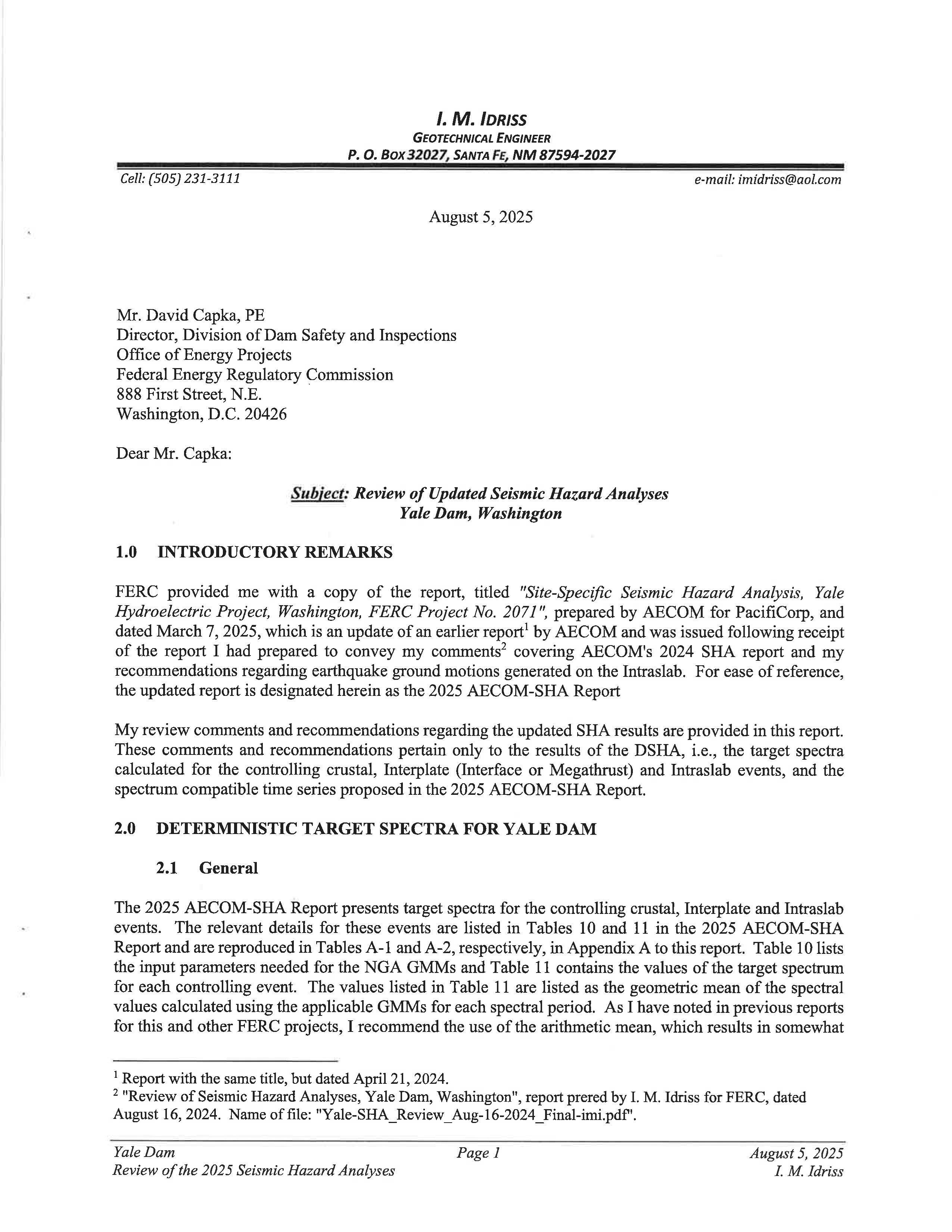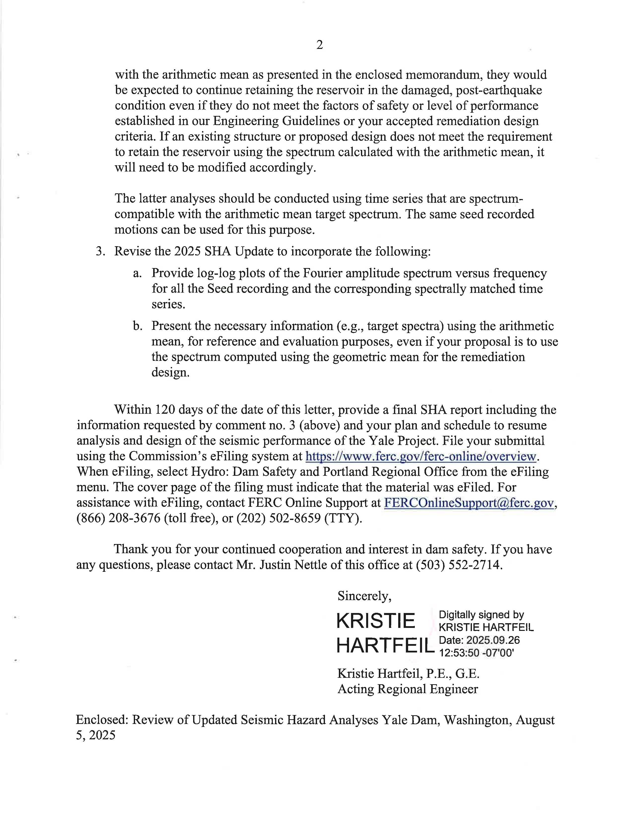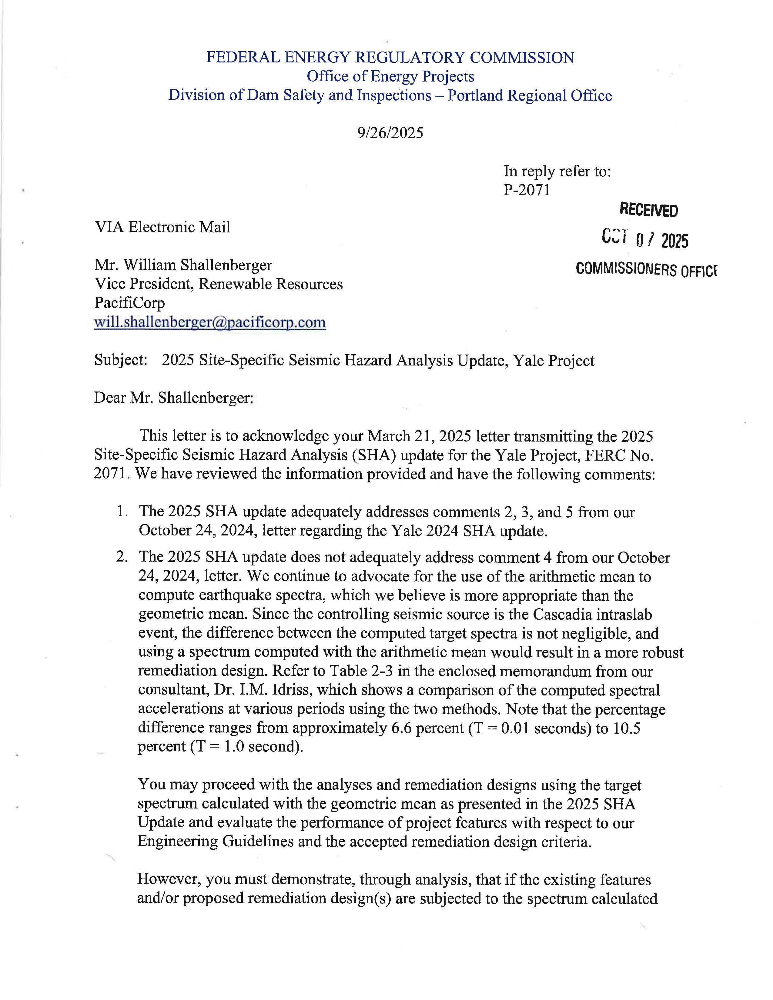 i. Federal Energy Regulatory Commission (FERC) Notice dated 9/26/25 regarding the 2025 Site-Specific Seismic Hazard Analysis Update, Yale Project. (14436)