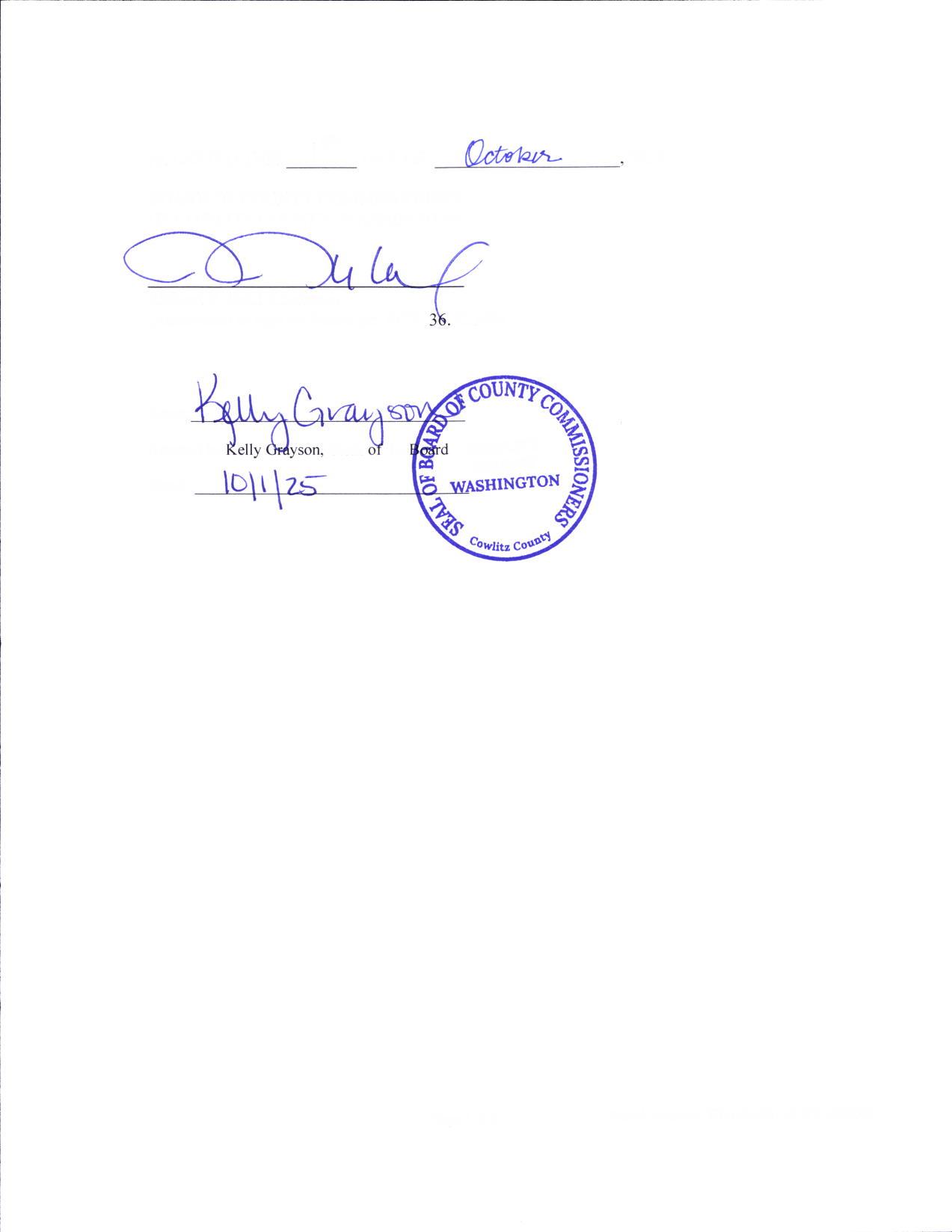 18. 9:30 a.m. - Ordinance to Reflect Codification of Amendment by the state Office of Code Reviser to RCW 36.32.120(10), Re-numbering it as RCW 36.32.120(11), effective July of 2025, and Amending Cowlitz County Code Sections 12.55.070, 15.50.120, 15.50.130, 16.20.100, and 16.22.110, and updating Section 2.06.120 to Incorporate said Statutory Amendment. (14405)