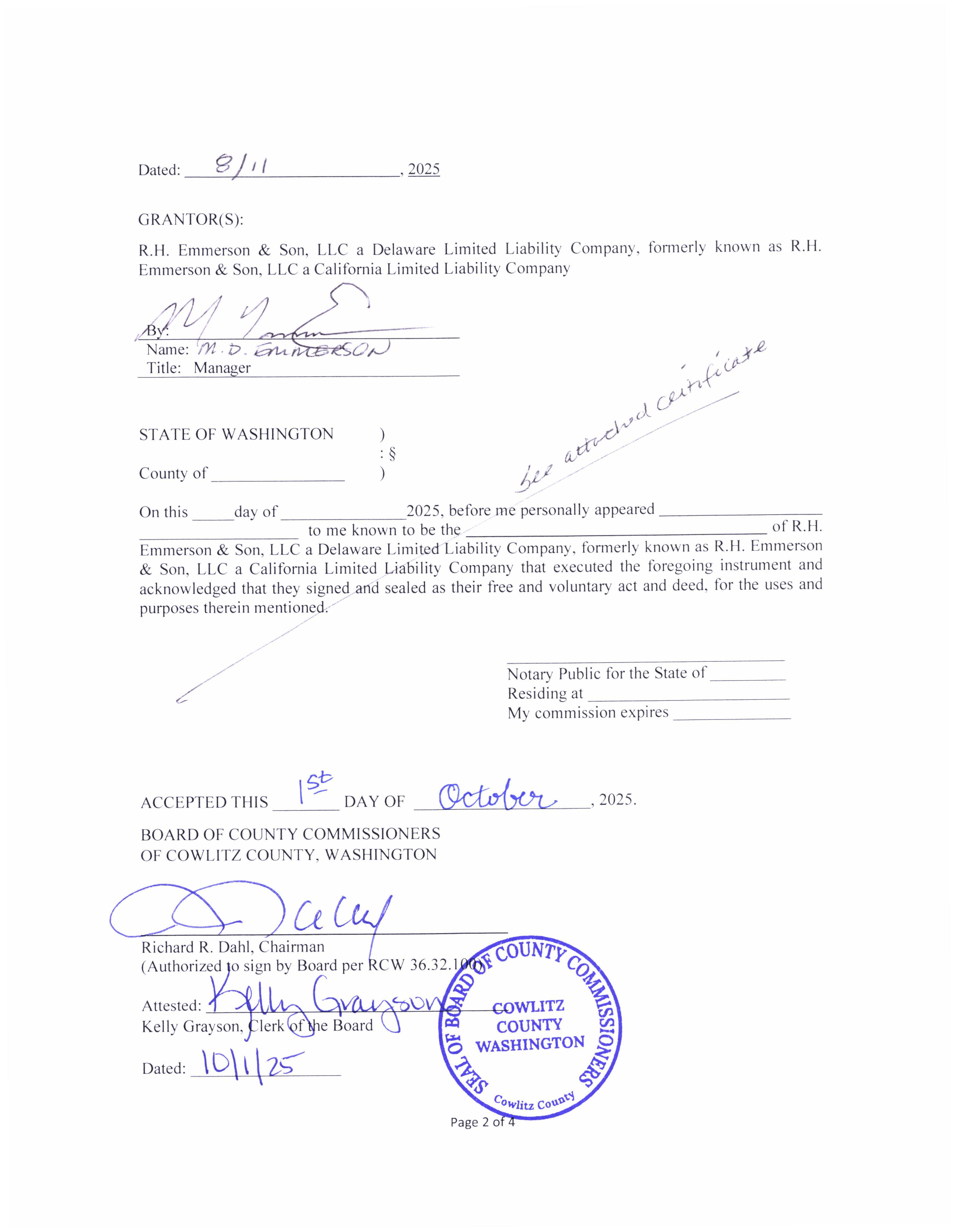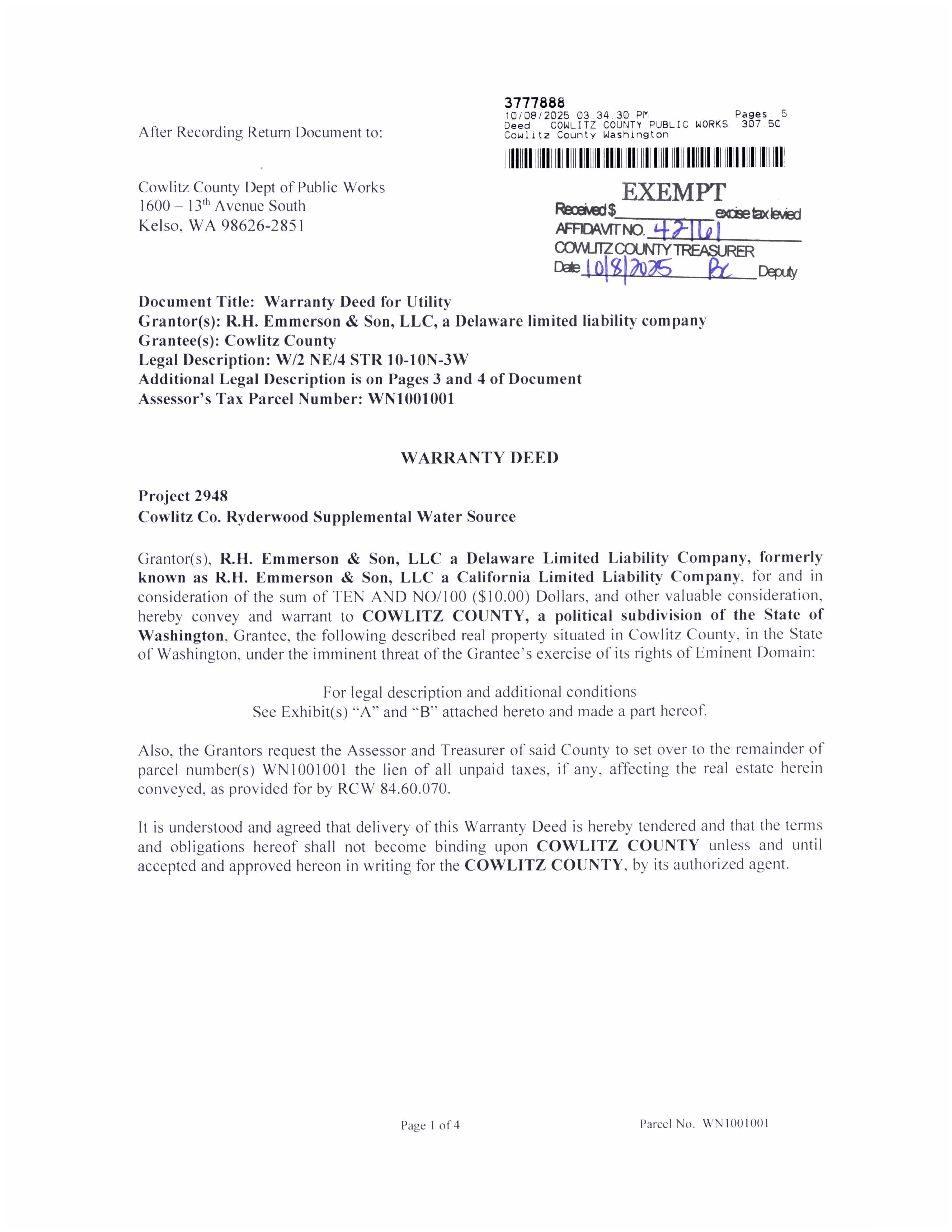 c. Recorded Warranty Deed from R.H. Emmerson Ryderwood Supplemental Water Source to address drought resiliency for the residents of Ryderwood, WA. (14425)