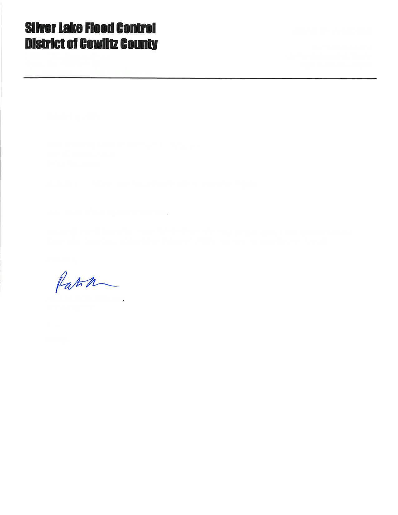 h. Letter dated 10/9/25 from Patrick Harbison, Diking Engineer, Silver Lake Flood Control District of Cowlitz County regarding the Silver Lake Regulating Structure Inspection Report. (14432)