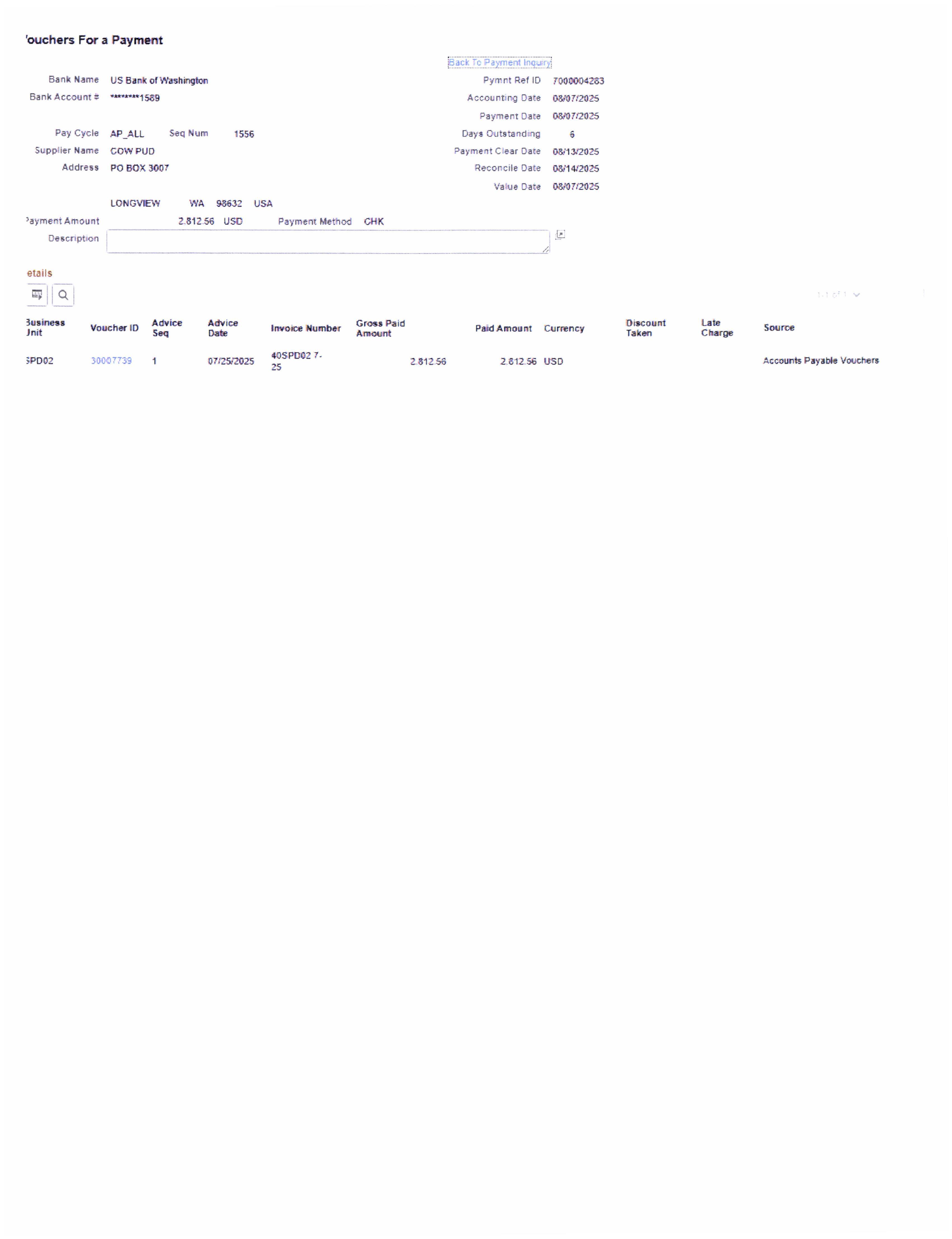 The following vouchers/warrants are approved for payment.