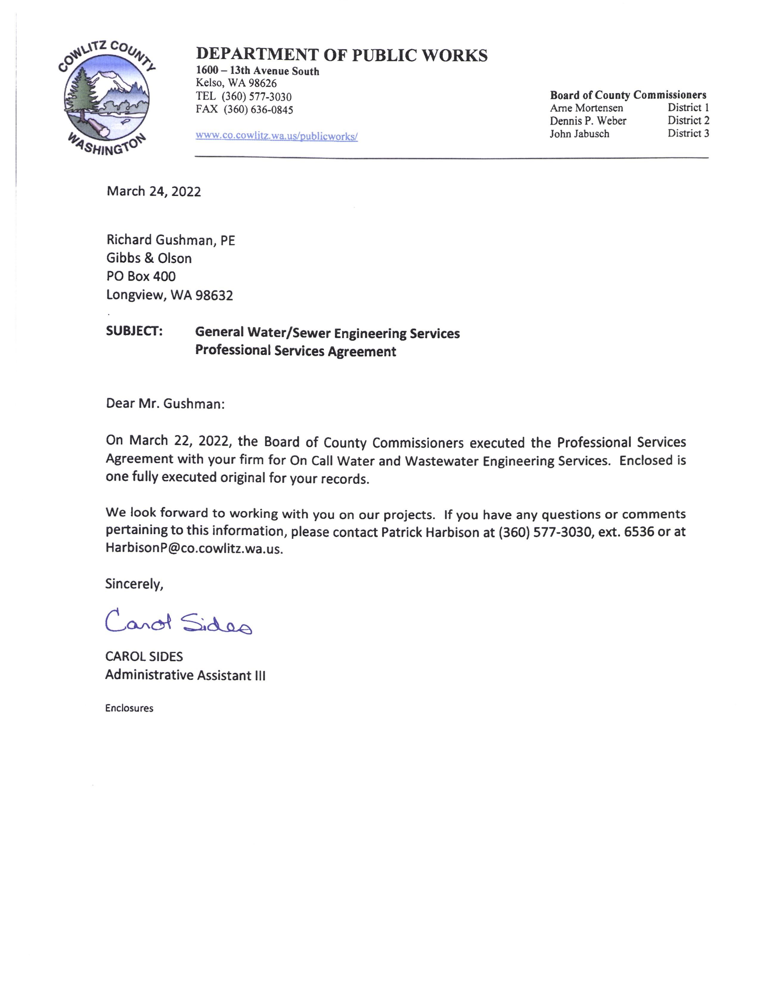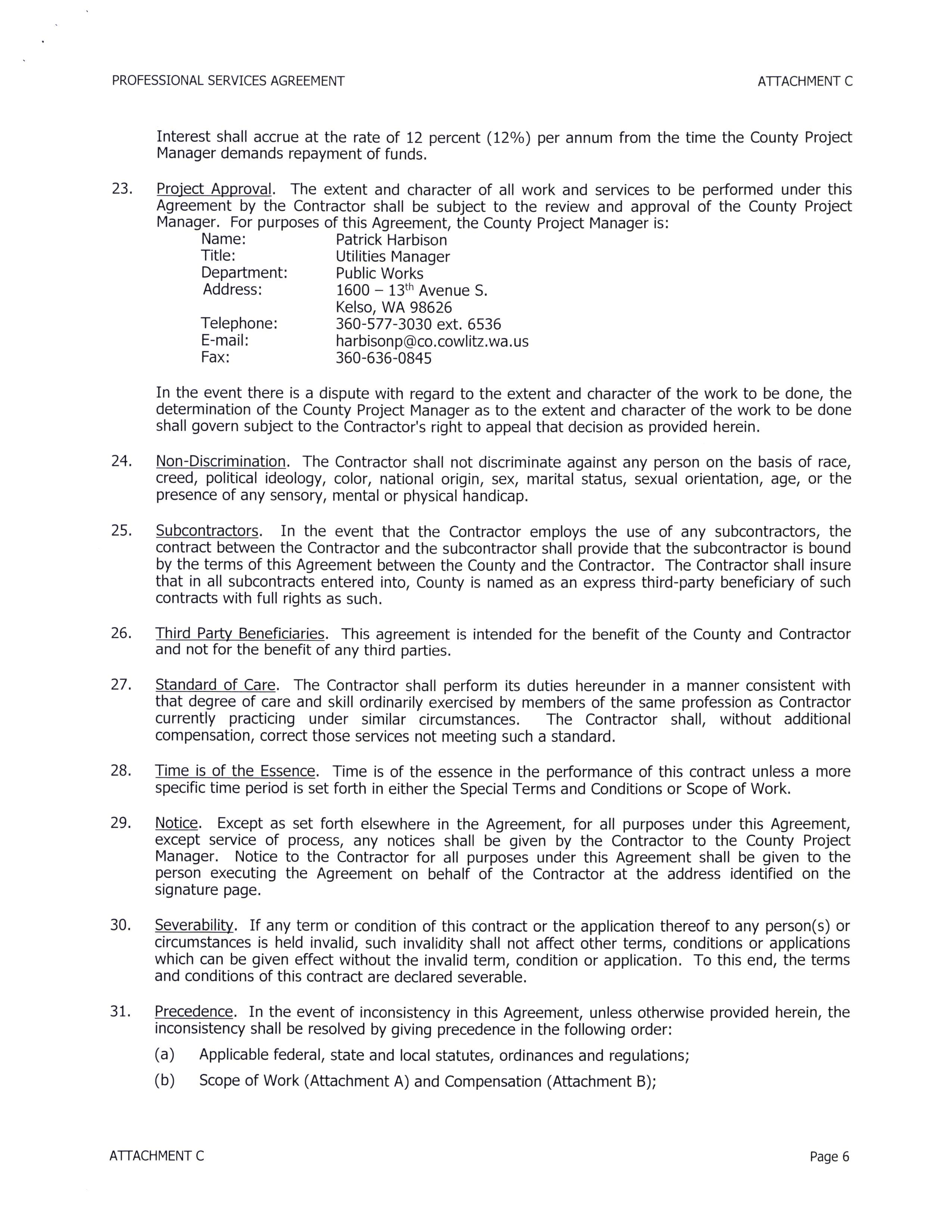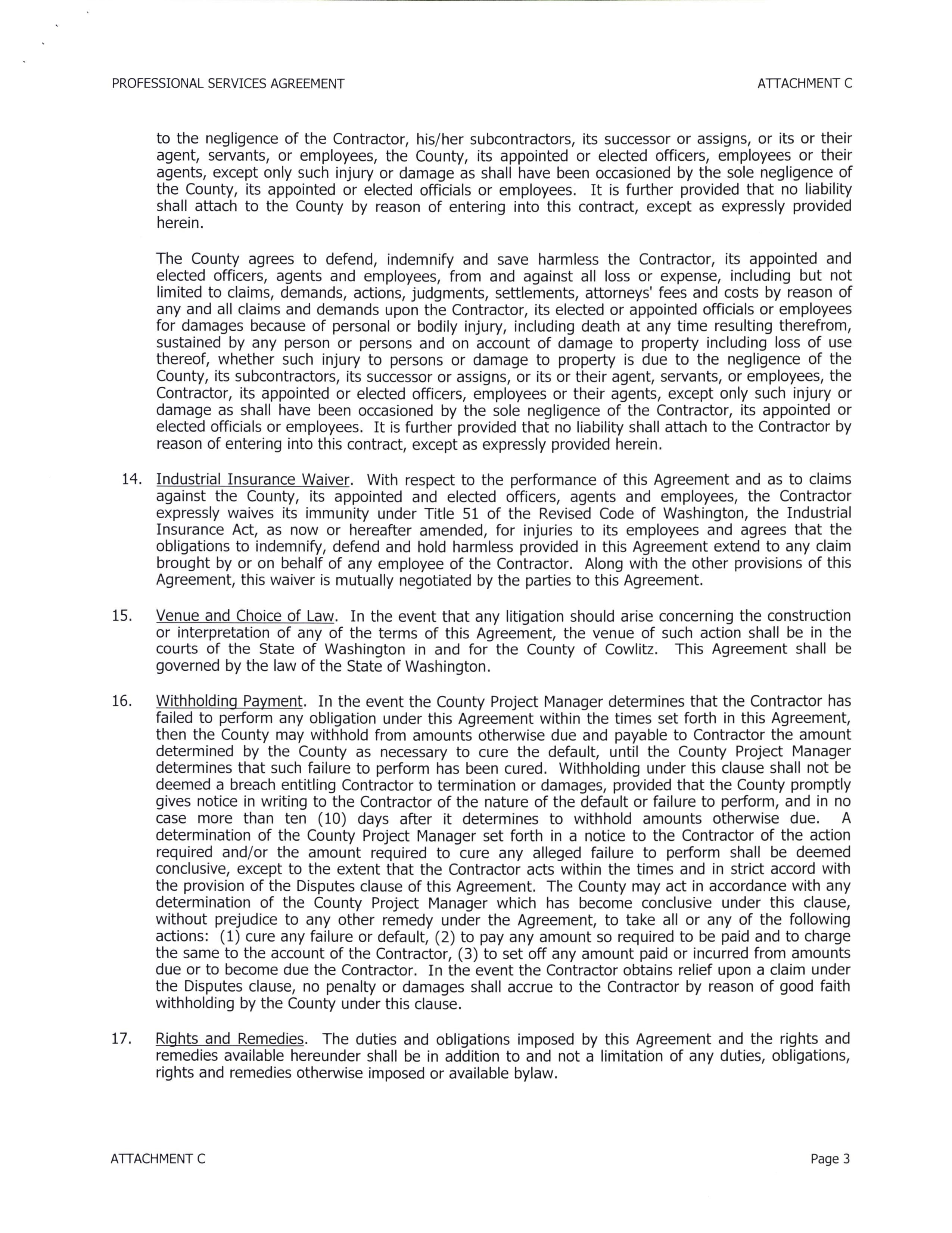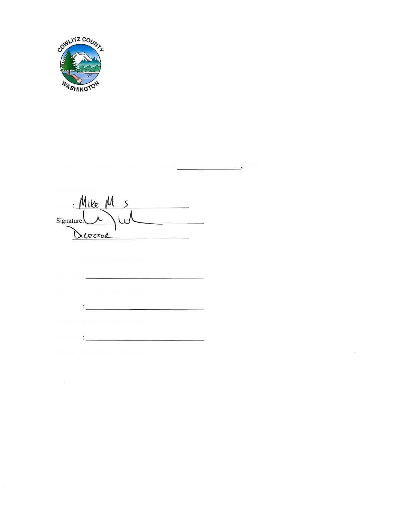 If to Cowlitz County: Gena James, Deputy Director
