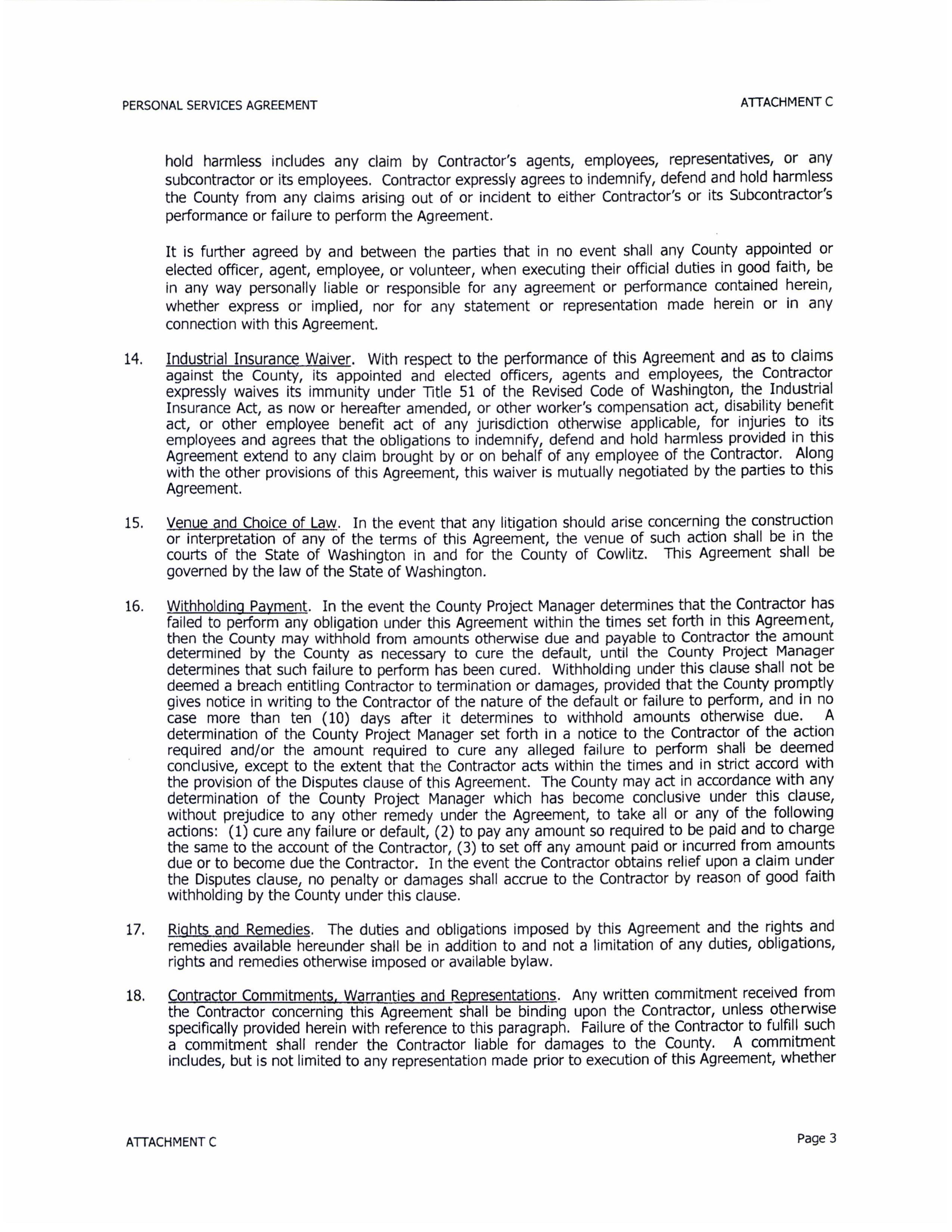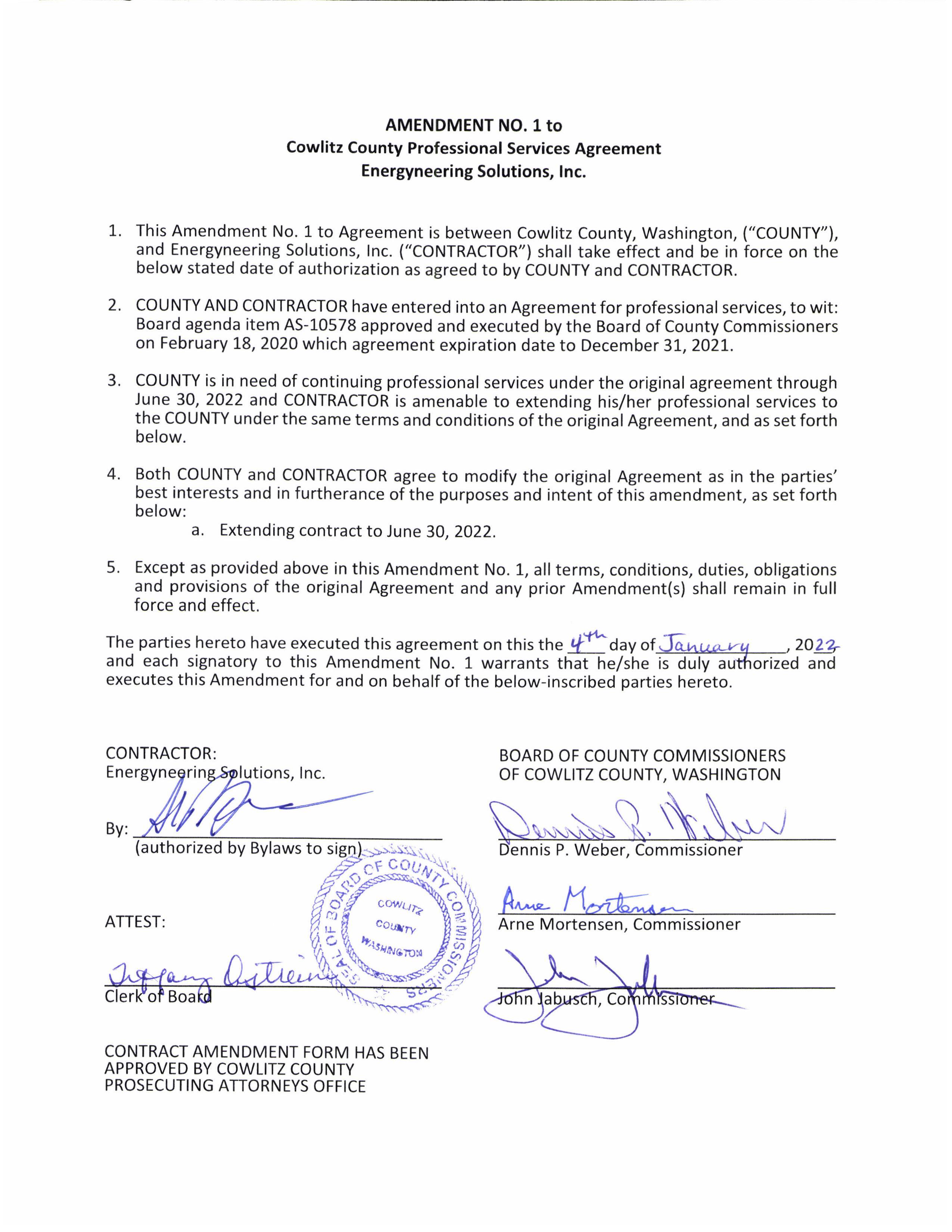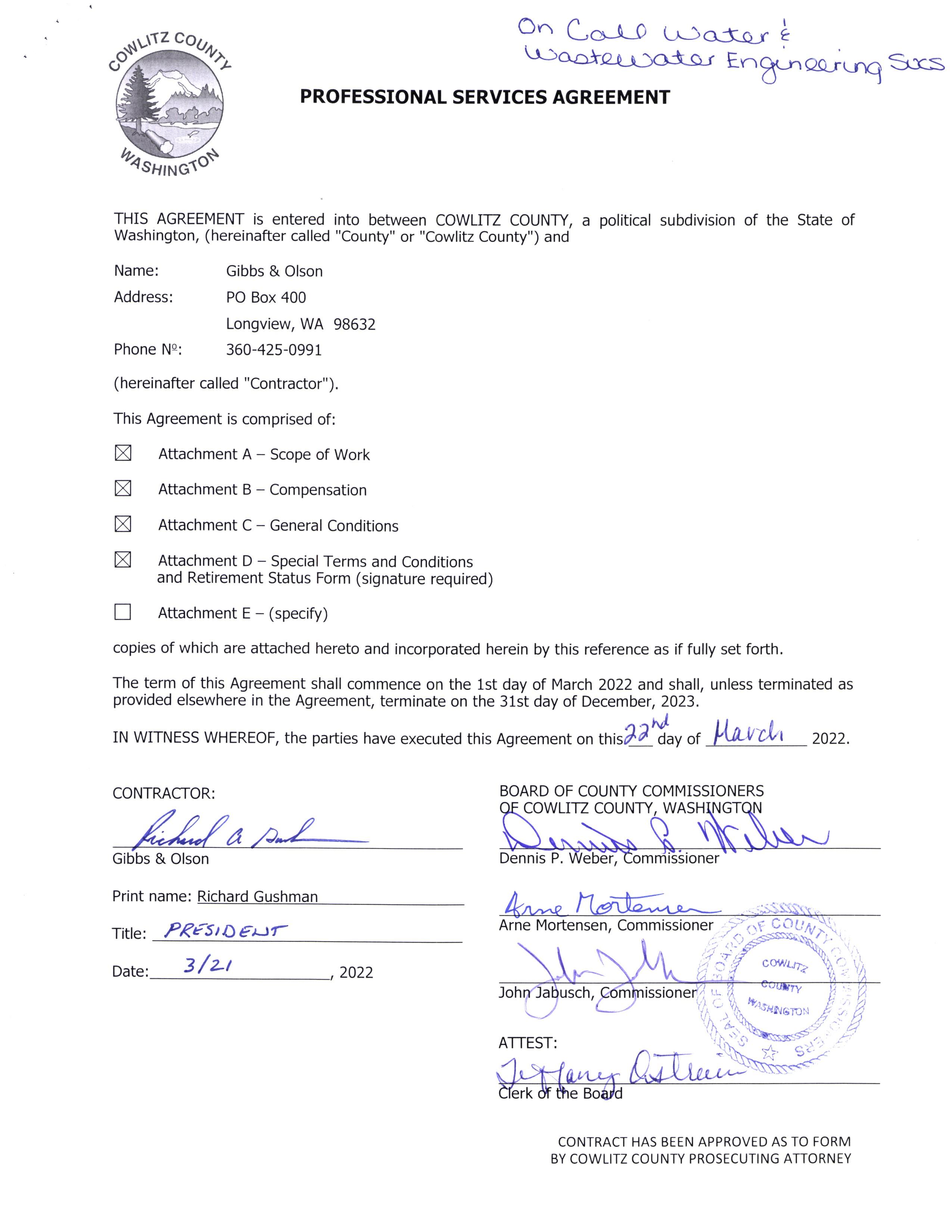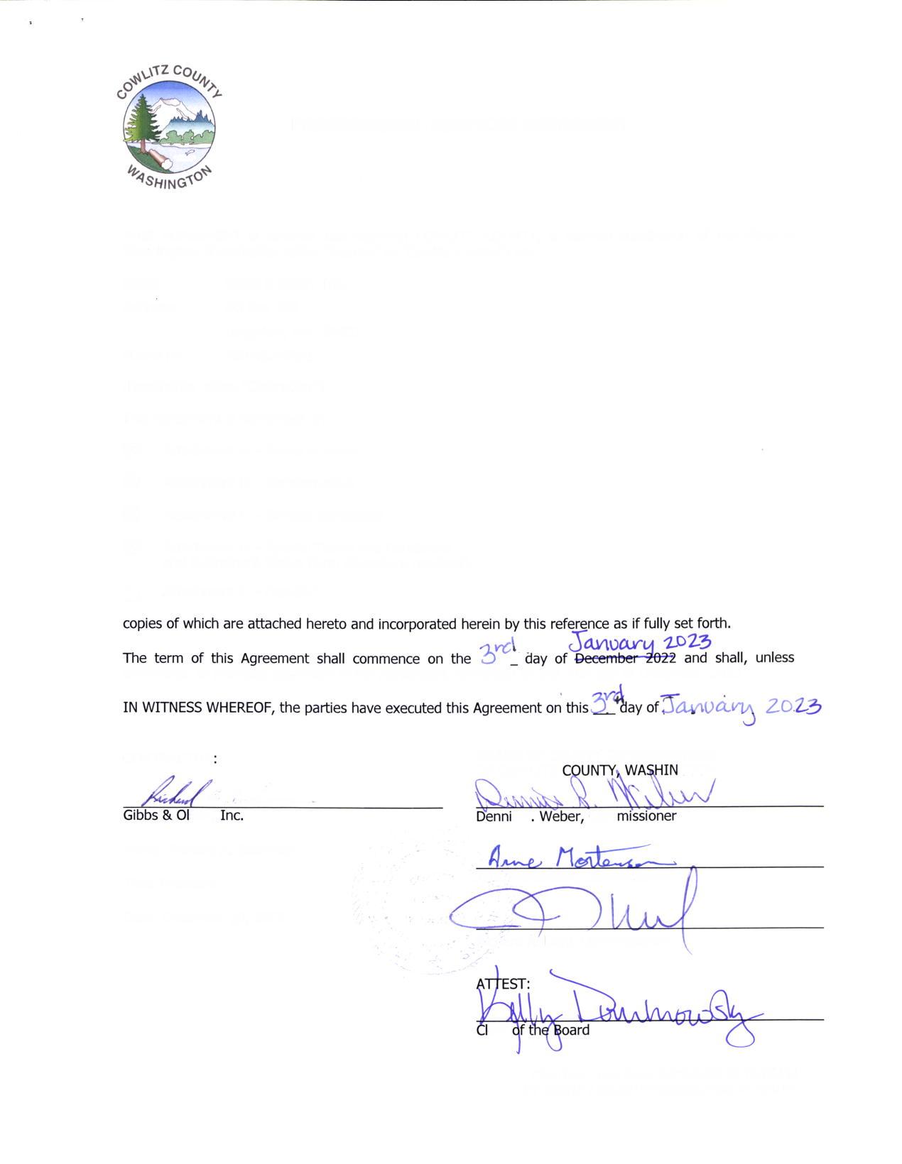 CONTRACT HAS BEEN APPROVED AS TO FORM BY COWLITZ COUNTY , Clerk of the Board
