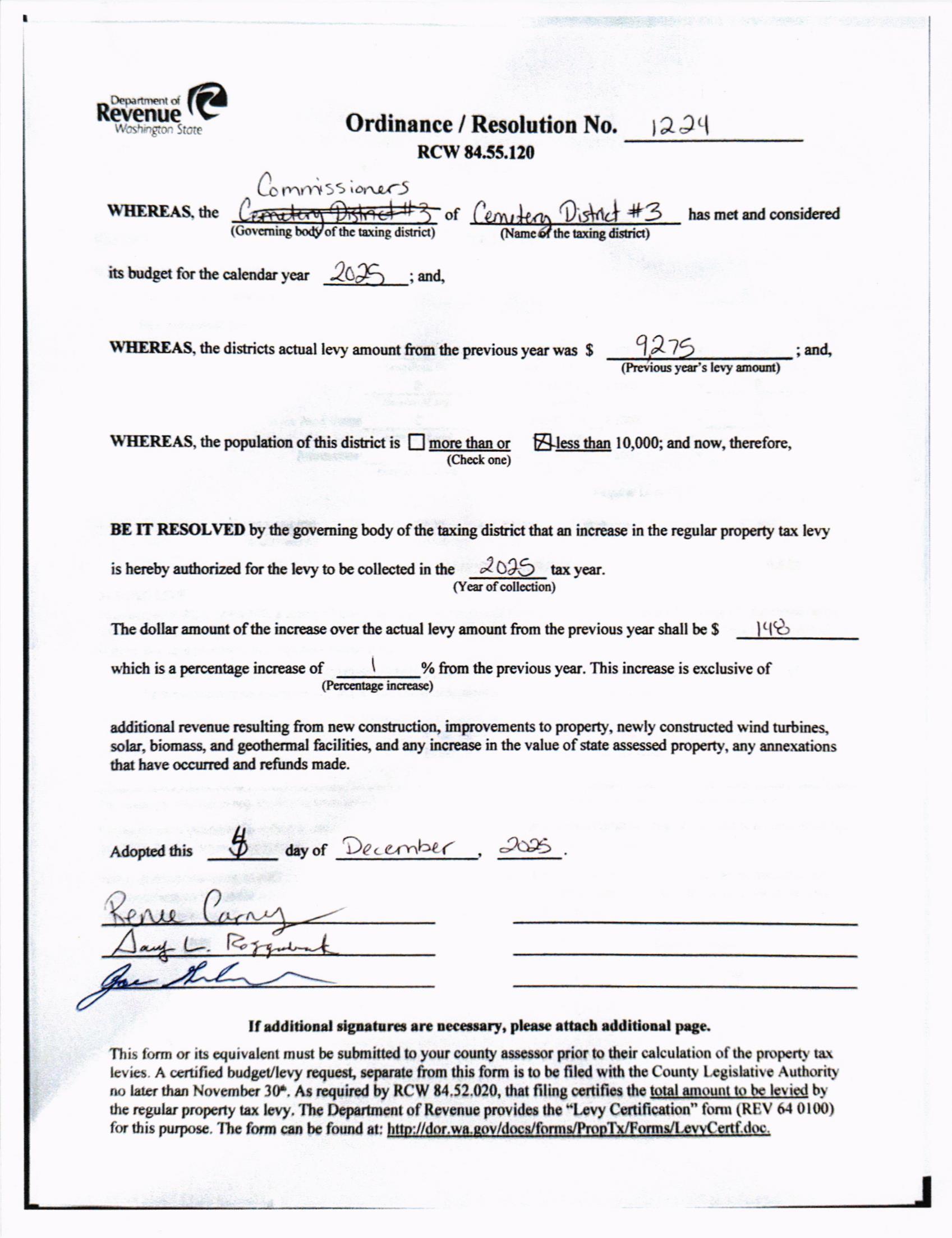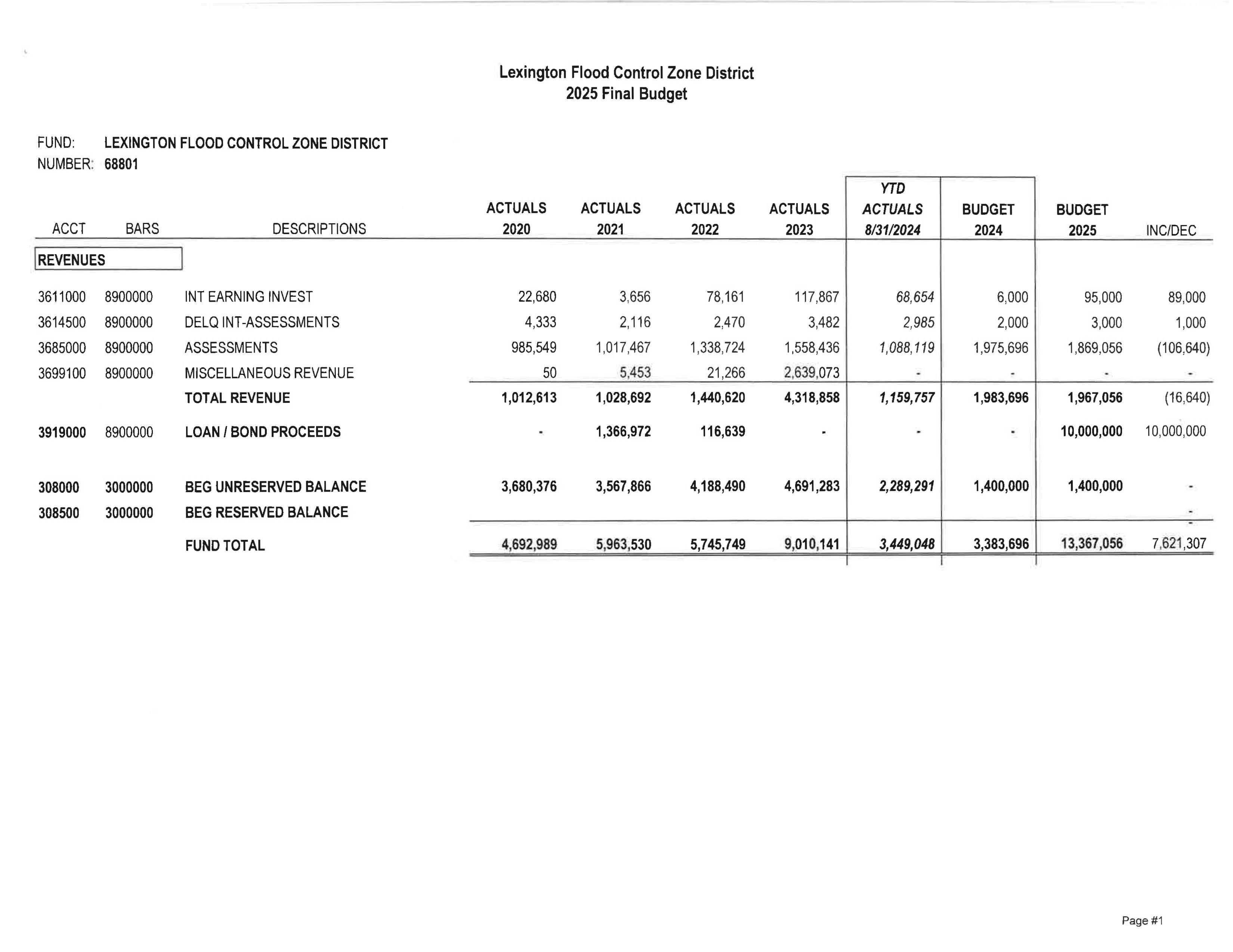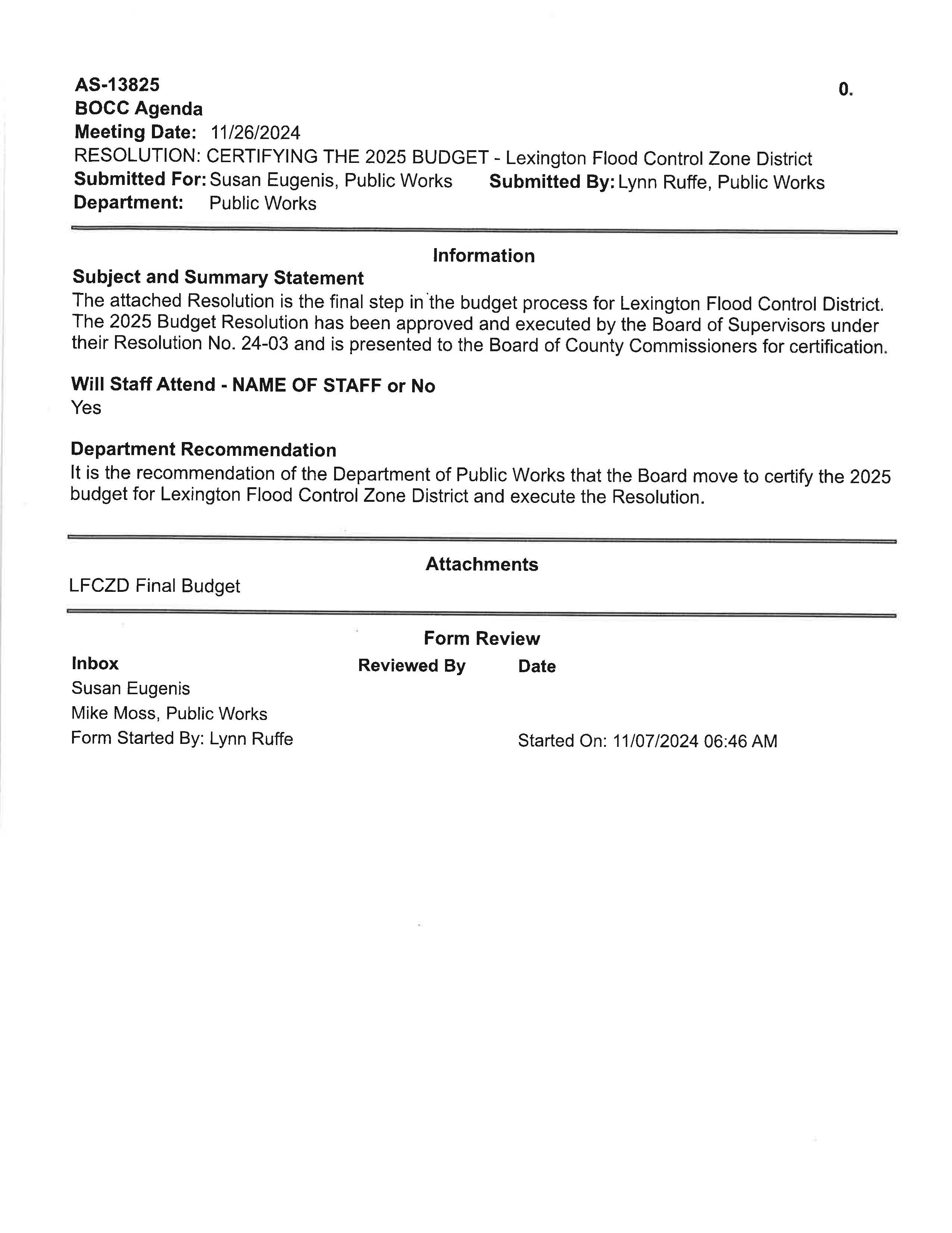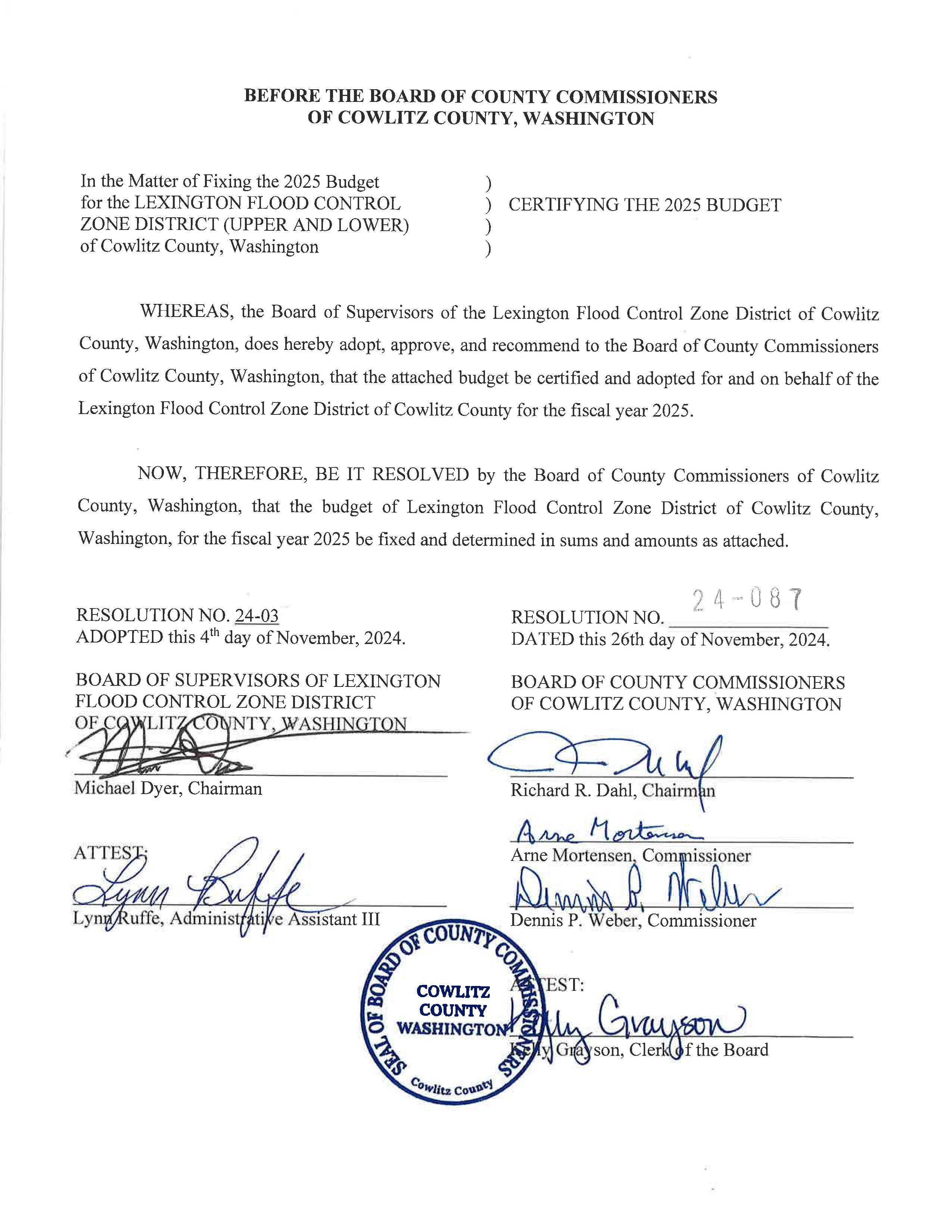 12. Resolution for the Order & Levy for the Year 2025 for the Lexington Flood Control Zone District. (13893)